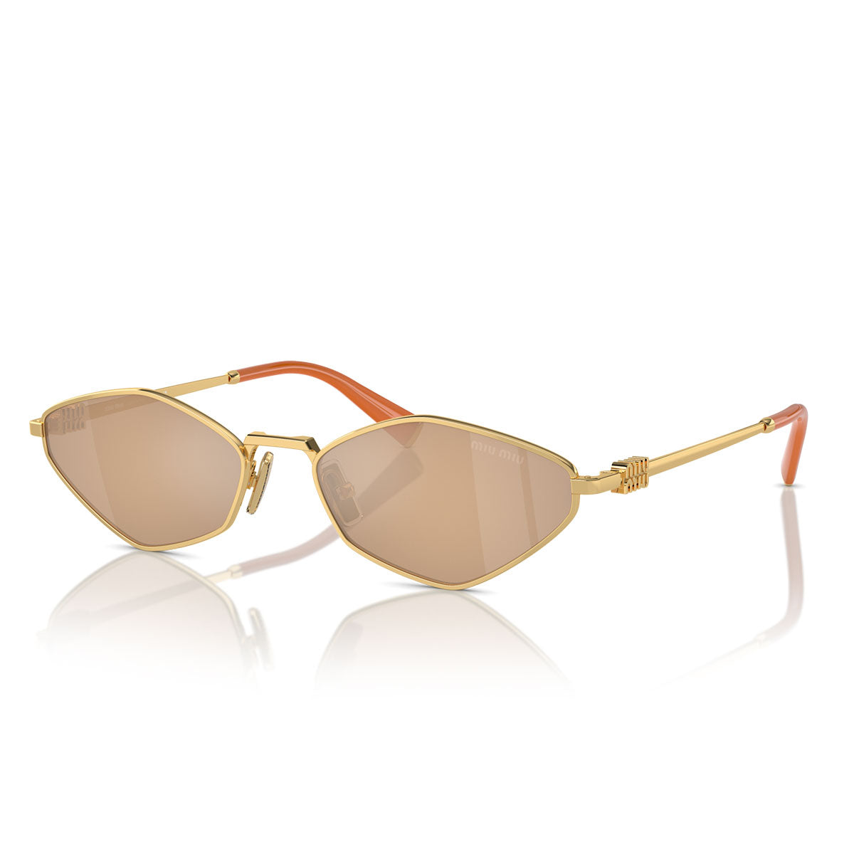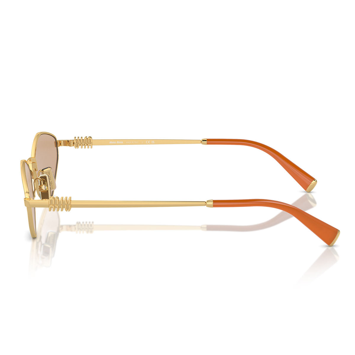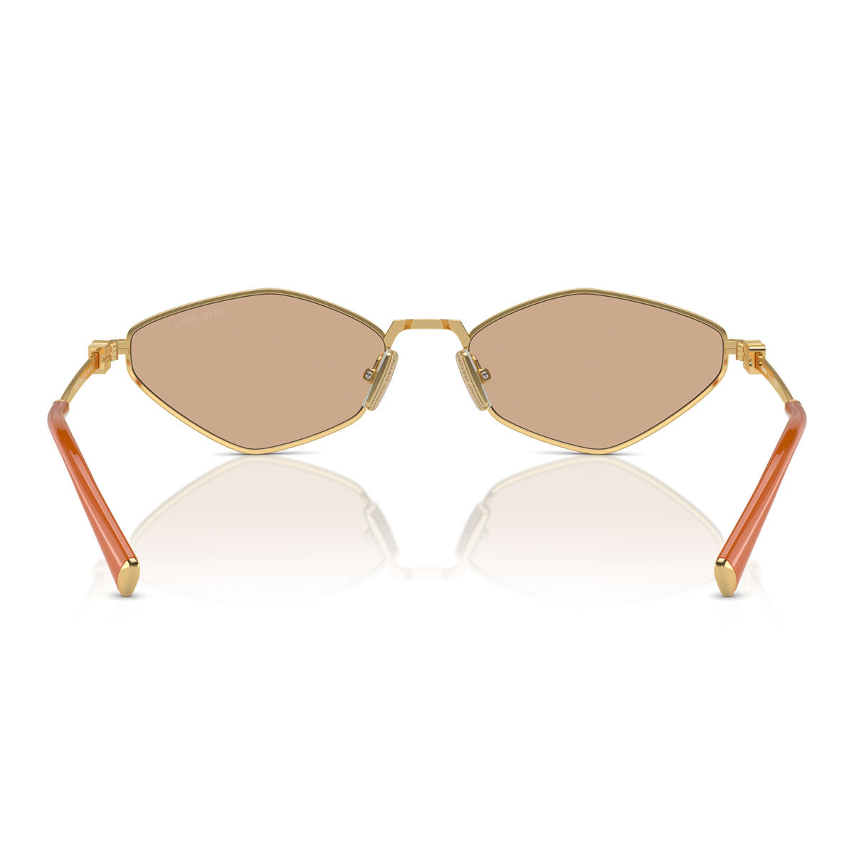 Cienkie metalowe zauszniki, ozdobione logo Miu Miu, doskonale komponują się z końcówkami z acetatu, wzbogaconymi metalowym detalem na czubku. To idealne połączenie tworzy równowagę między elegancją a oryginalnością. Dostępne z soczewkami w jasnopomarańczowym, ciemnobrązowym i ciemnoszarym kolorze, okulary przeciwsłoneczne Miu Miu MU56ZS są idealnym uzupełnieniem dla tych, którzy szukają wyróżniającego się, odważnego i wyrafinowanego wyglądu.