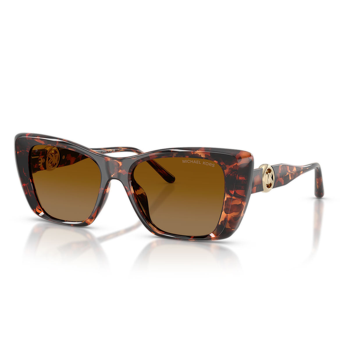 Na zausznikach, łagodne krzywizny logo MK Pop Charm tworzą elegancki kontrast z mocnymi i wyraźnymi liniami, nadając modelowi równowagę i charakter. To wyróżniający detal, który sprawia, że te okulary są od razu rozpoznawalne.