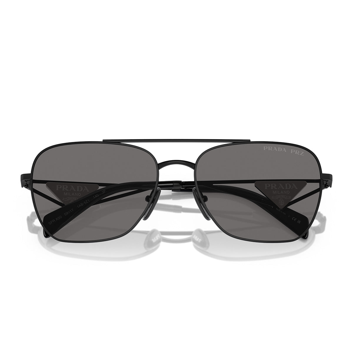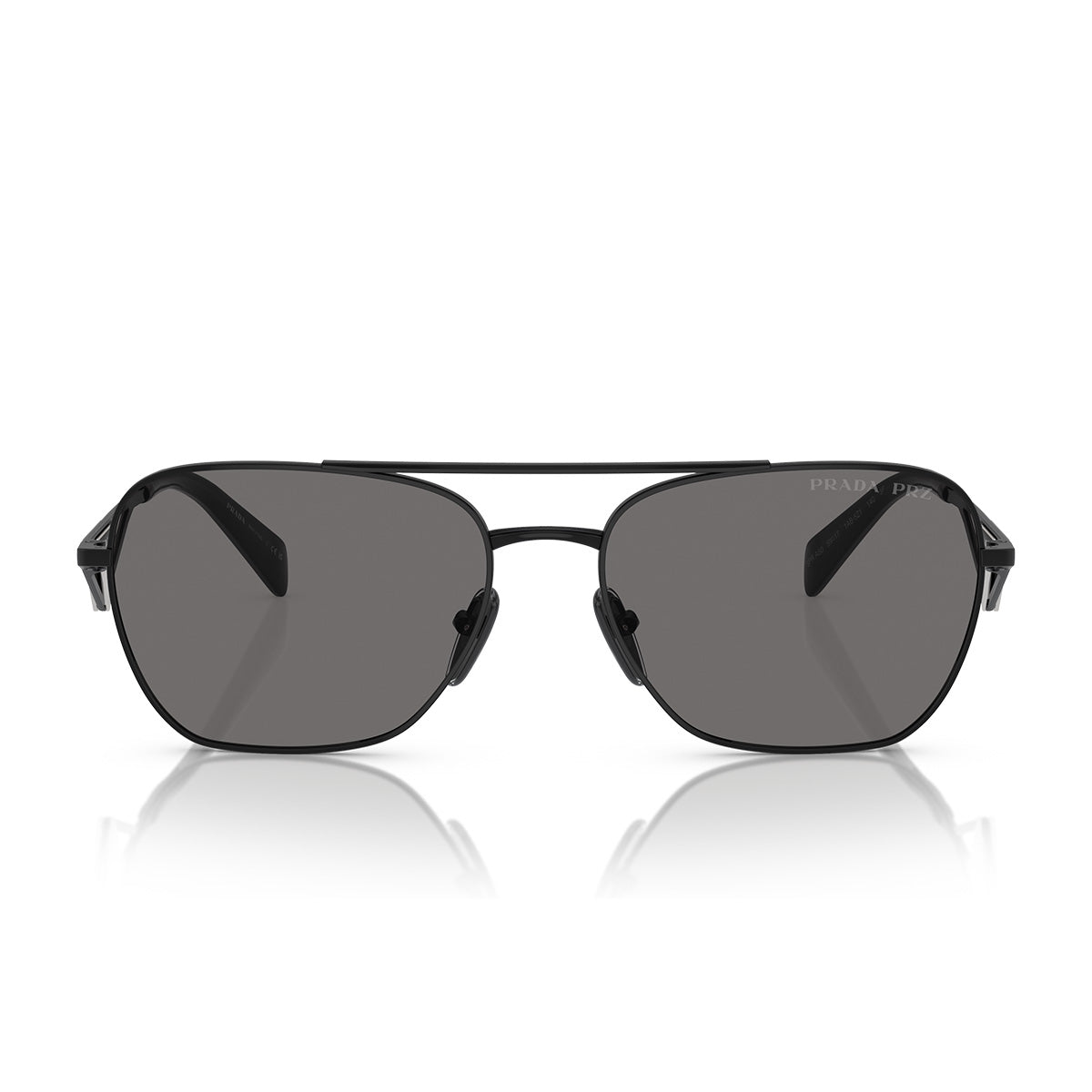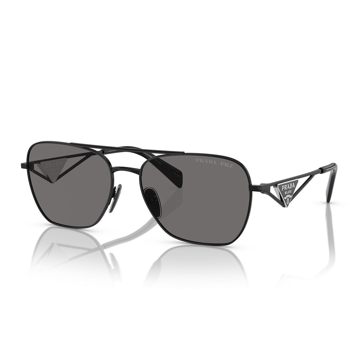Okulary przeciwsłoneczne Prada PRA50S łączą miękkie kształty i architektoniczne detale, tworząc wyróżniający się i nowoczesny wygląd. Sylwetka pilot, elegancka i lekko zaokrąglona, łączy się z prostymi i kanciastymi zausznikami z ażurowanego metalu, ozdobionymi ikoniczną trójkątną plakietką z logo Prada inspirowanym torebkami maison. Soczewki dostępne są w pełnych, wyrazistych odcieniach, a także w opcji gradientowej w kolorze karmelowym, dla stylu wyrafinowanego i zawsze rozpoznawalnego.