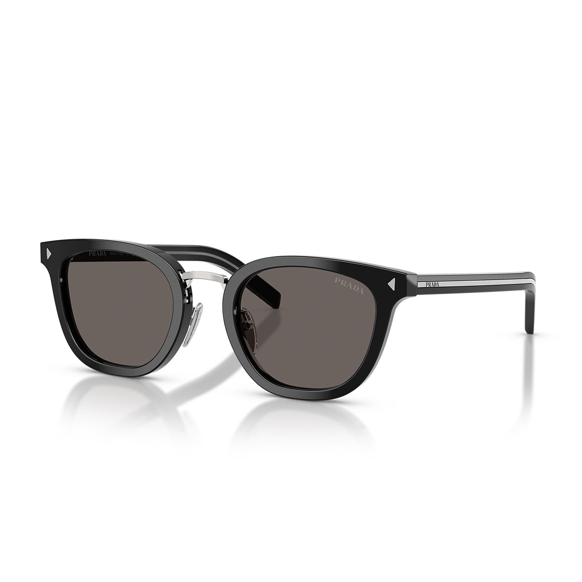 Eleganckie i wyrafinowane, okulary przeciwsłoneczne Prada PRC01SD łączą czysty design z minimalistycznymi i wyszukanymi detalami. Oprawa z acetatu jest ozdobiona wydłużoną metalową plakietką z wygrawerowanym logo Prada na zausznikach, podczas gdy metalowy mostek i błyszczące trójkąty na froncie dodają struktury i dyskretnego wyrafinowania.