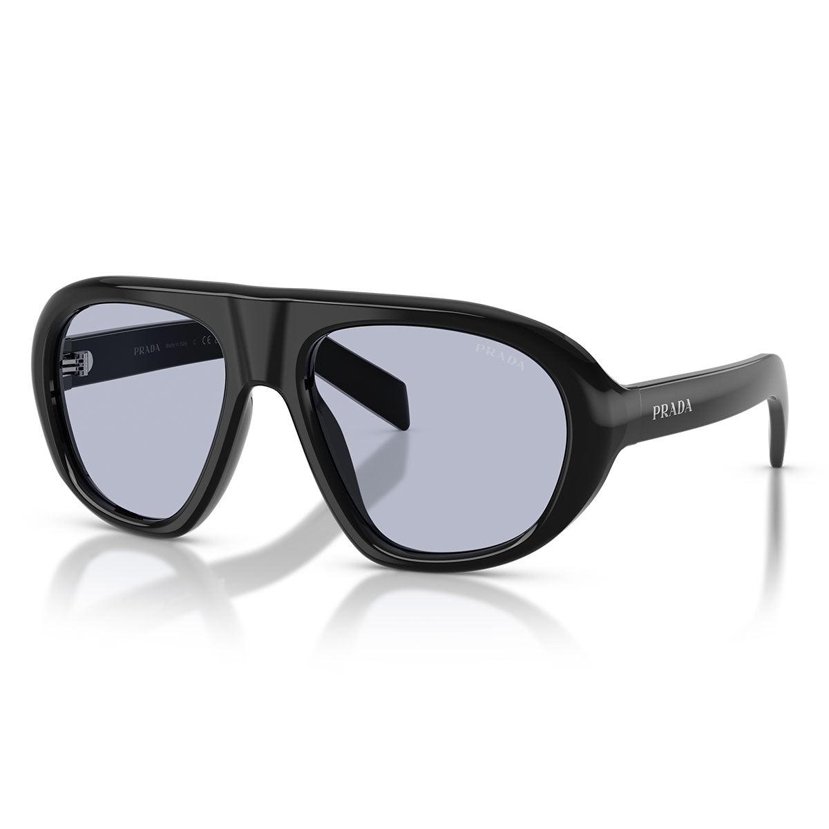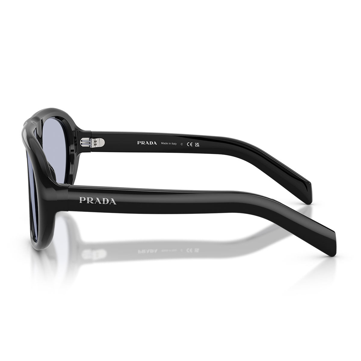 Projekt dopełnia laserowo wygrawerowane logo PRADA wypełnione emalią, świadczące o dbałości marki o detale. Paleta kolorystyczna obejmuje zaskakujący prążkowany acetat w odcieniu "lagoon", zestawiony z oliwkowozielonymi soczewkami, tworząc bogaty kontrast między brązem a zielenią. Wyjątkowy dodatek łączący odważny styl z współczesną elegancją.