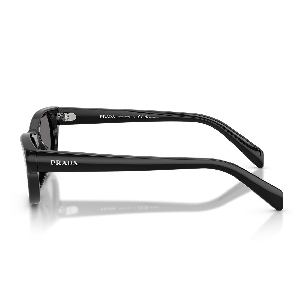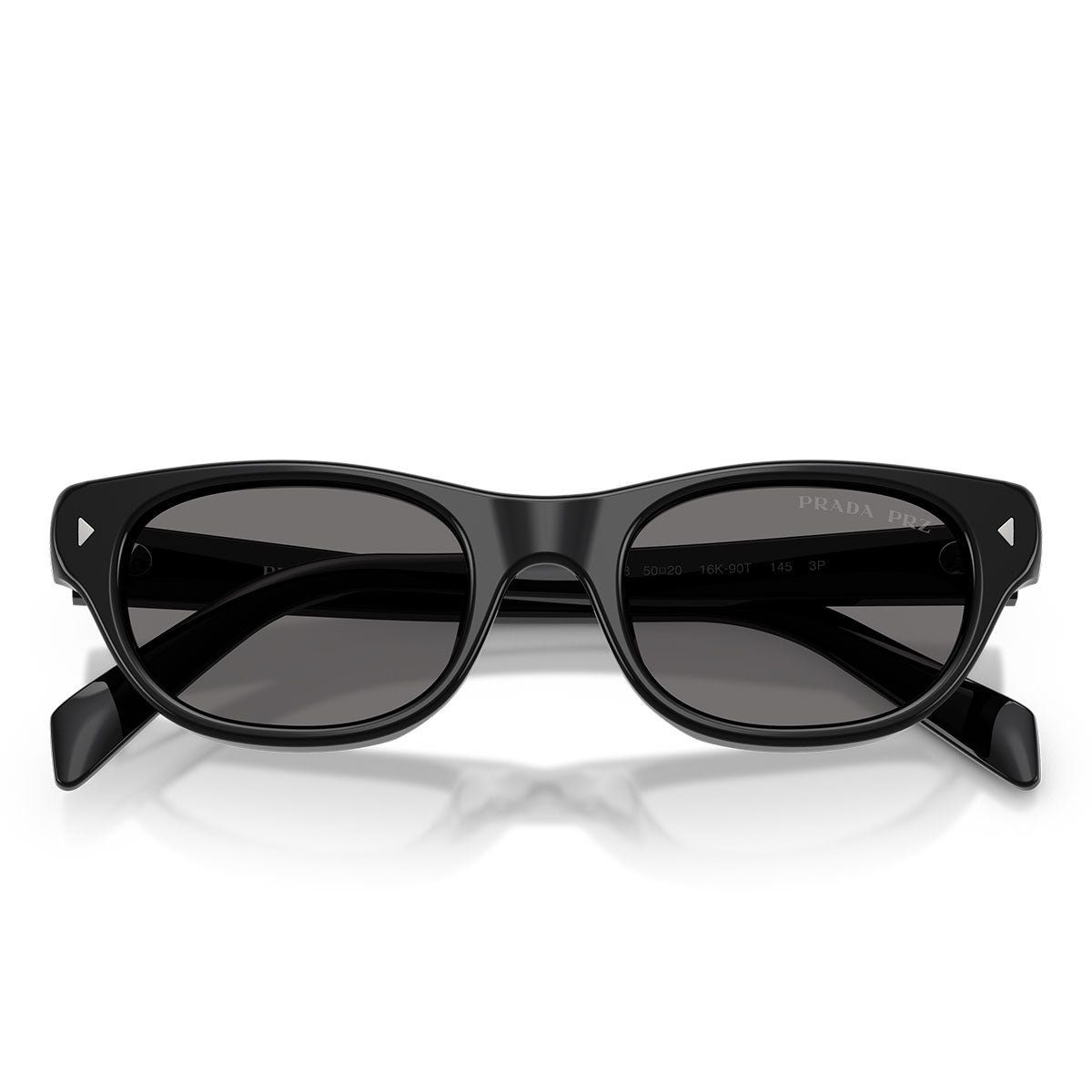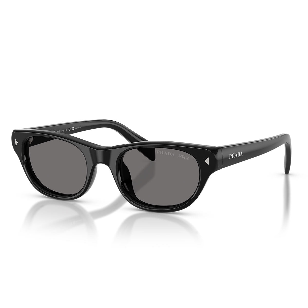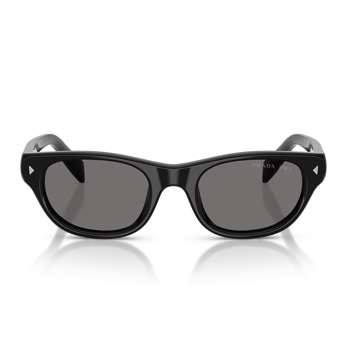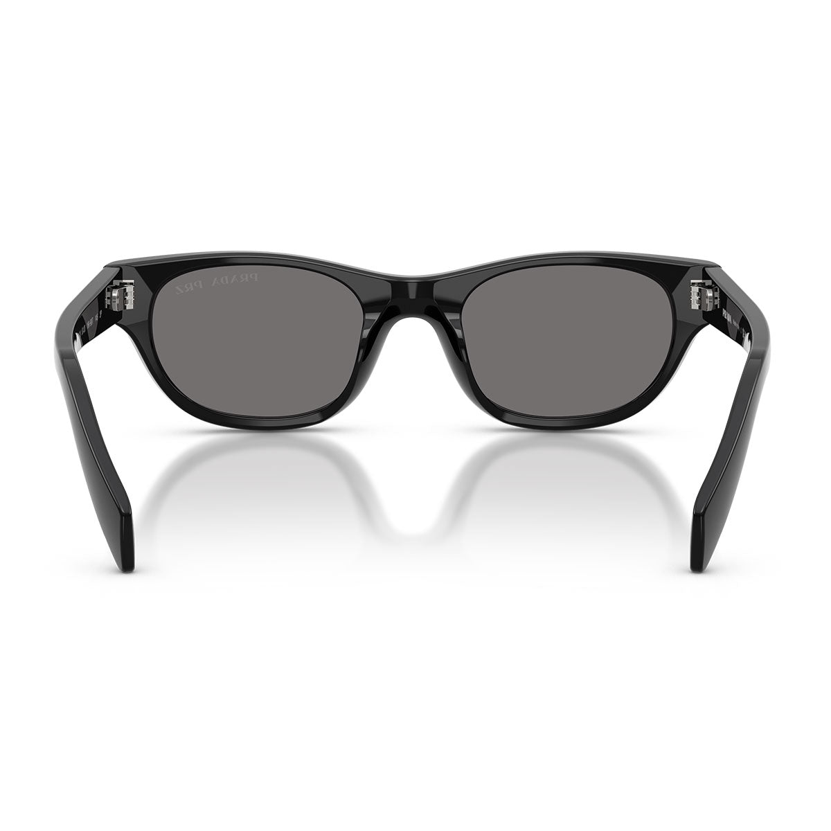 Lekkość acetatowych zauszników, cienkich i smukłych, podkreśla logo Prada wygrawerowane laserowo i wypełnione emalią, elegancki detal dodający charakterystycznego i wyrafinowanego akcentu. Na froncie wyróżniają się trójkątne nity, ikoniczny element nawiązujący do historycznych kodów estetycznych marki.