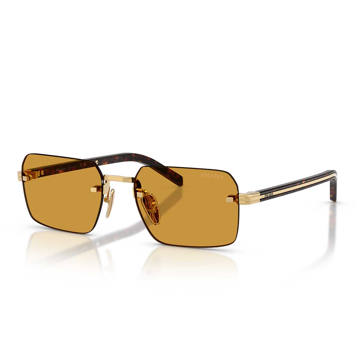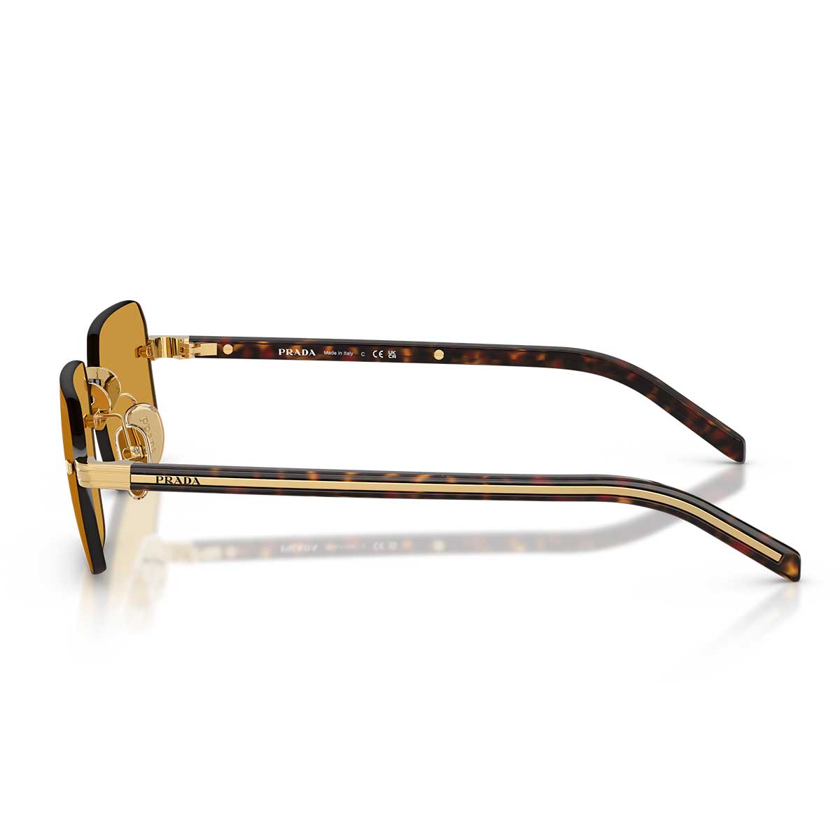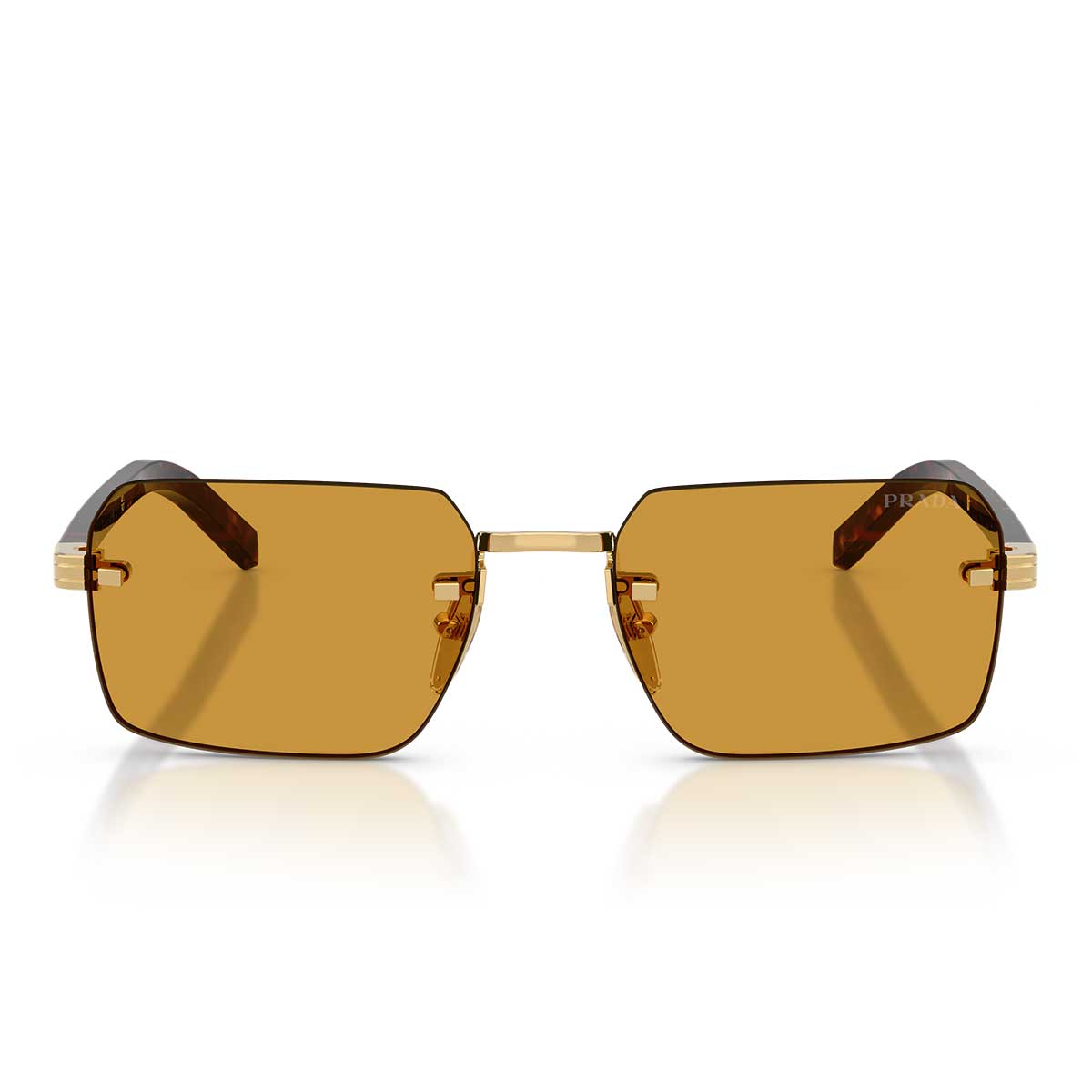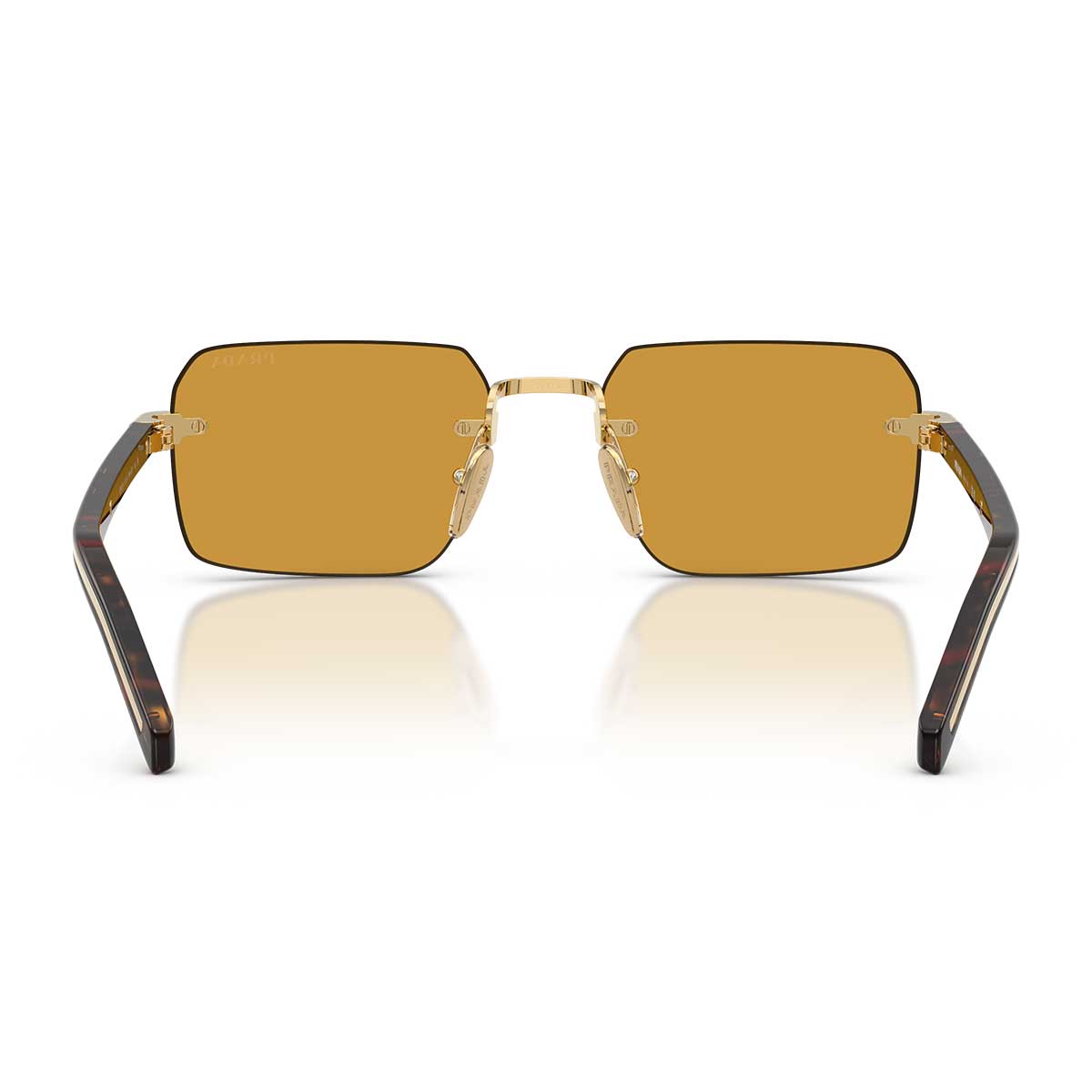 Cienkie zauszniki z acetatu zdobi metalowa plakietka z logo Prada, ikoniczny detal dodający rozpoznawalności i elegancji, zachowując idealną równowagę z minimalistycznym designem.