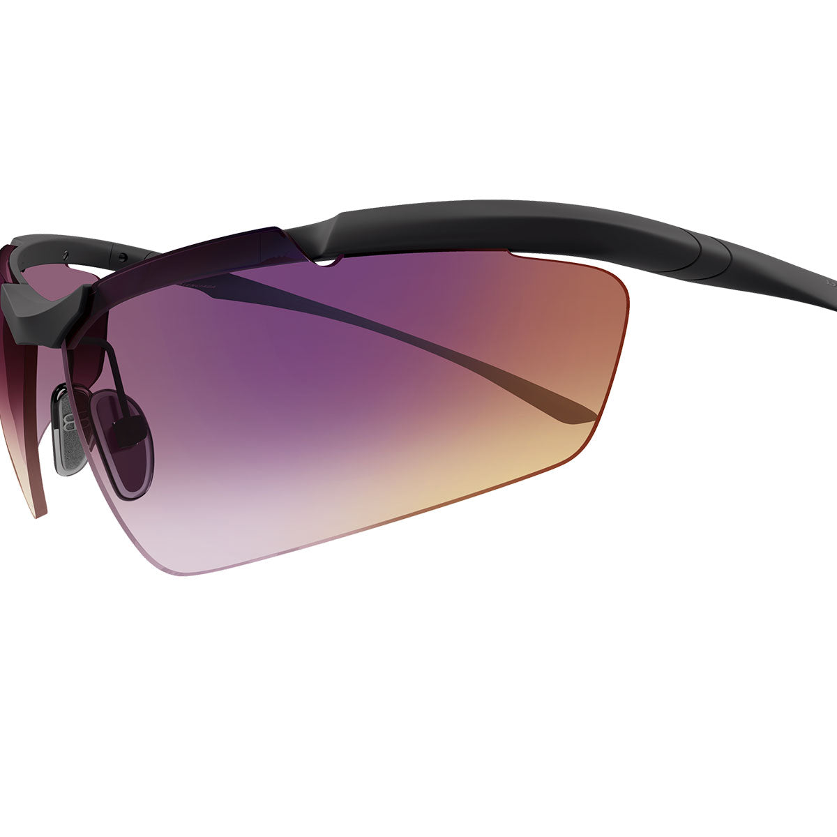 Die unisex-Form wird durch ein innovatives Scharnier-System mit 180°-Drehung aufgewertet, das den herkömmlichen seitlichen Klappmechanismus ersetzt und Funktionalität sowie eine futuristische Ästhetik bietet. Das Design wird durch das lasergravierte Logo auf den Bügeln abgerundet, ein feines und unverwechselbares Detail.