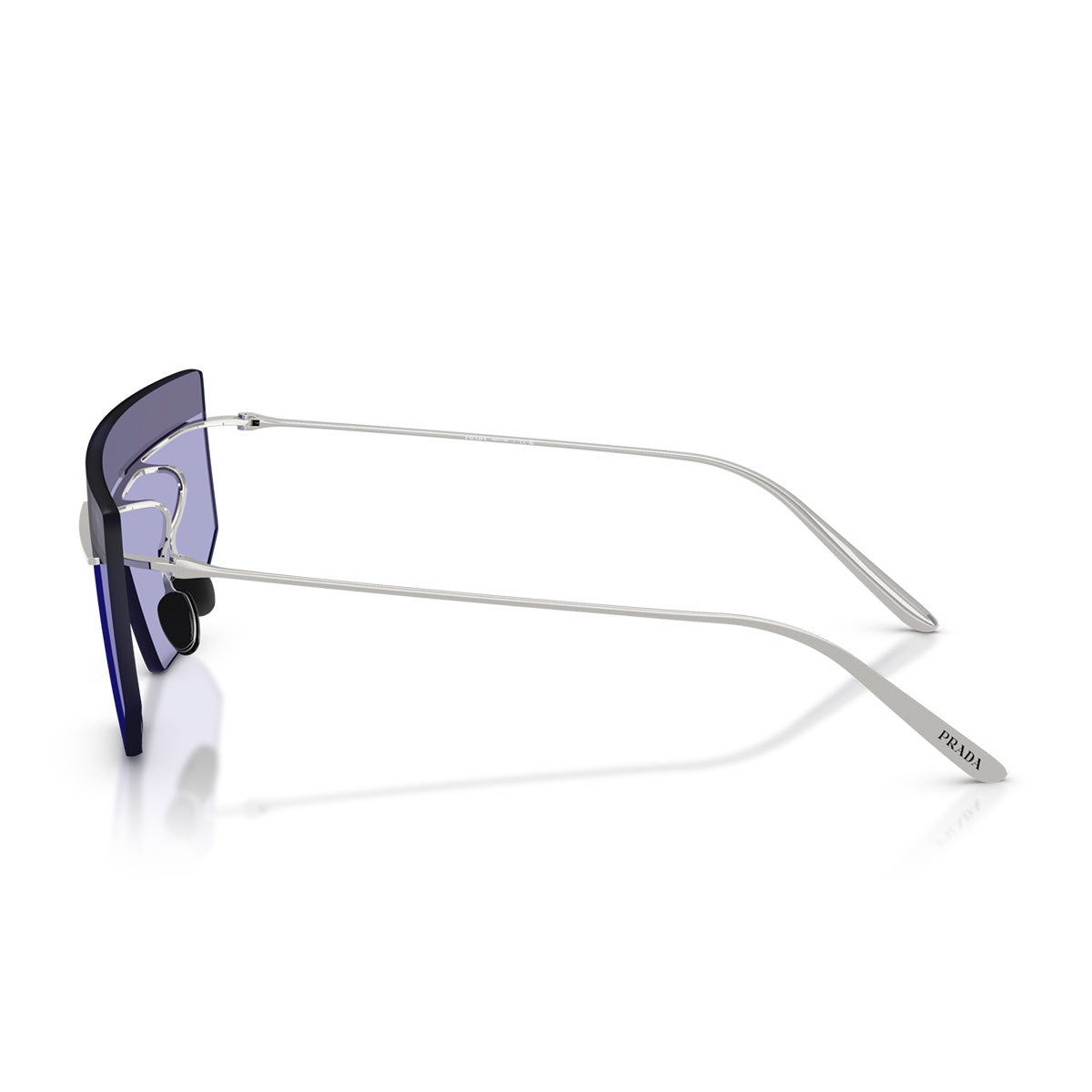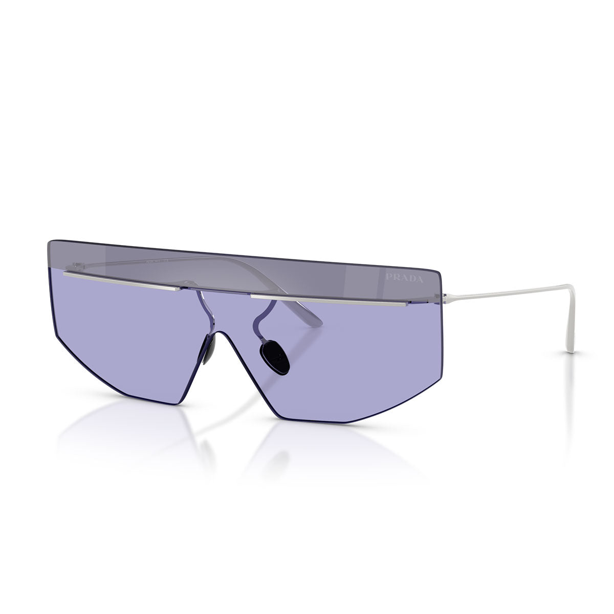 Die Prada PRB55S Sonnenbrille ist von den Modellen der Prada Herrenmode Frühjahr/Sommer 2025 inspiriert und verkörpert eine mutige und futuristische Ästhetik. Der maskenförmige Rahmen verfügt über einen schlanken Metallsteg, der sich bis zu den Schläfen erstreckt und geometrische Linien mit Minimalismus verbindet. Passend zum Thema der Kollektion, die die Realität in einer imaginären Welt erforscht, sind diese Brillen in Silber oder zweifarbig erhältlich.
