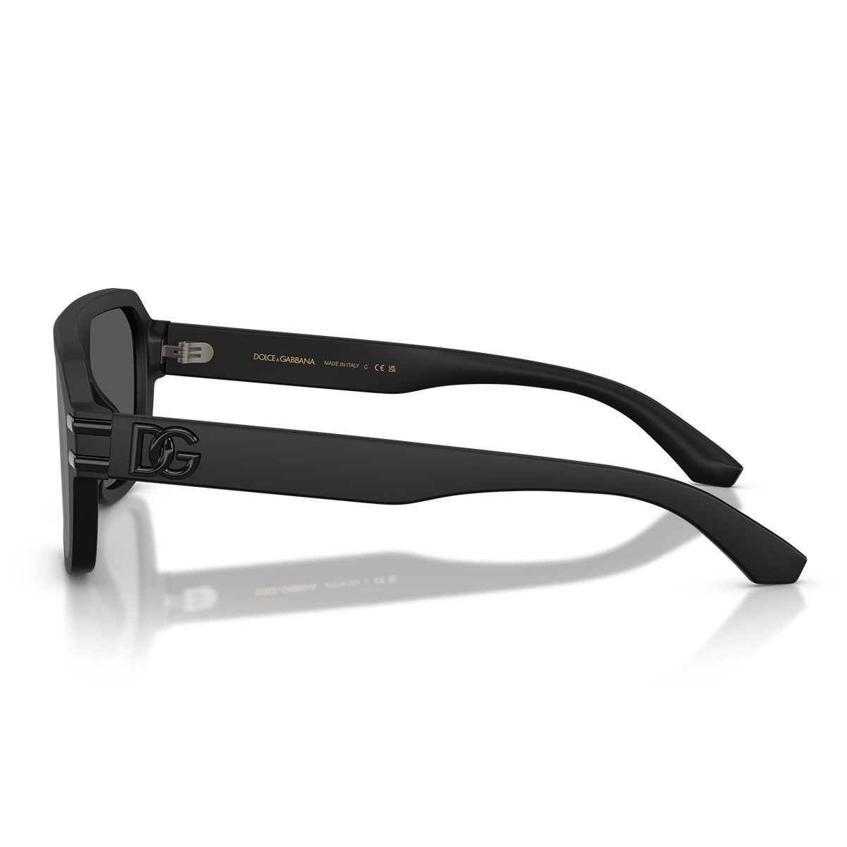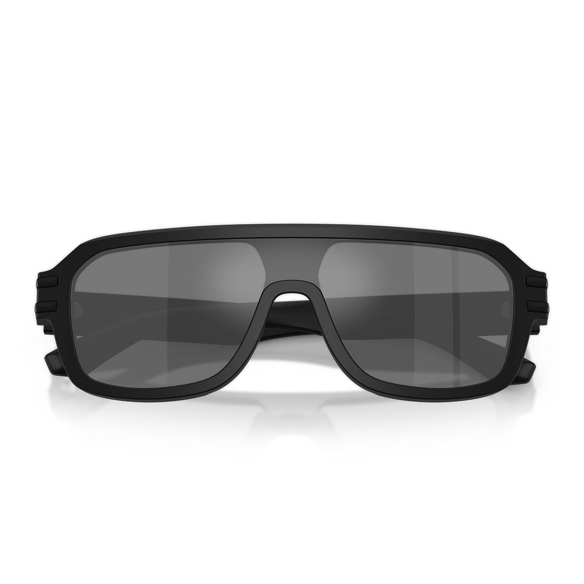 Dieses Modell zeichnet sich durch seine vollacetat Shield-Fassung mit flachem Frontteil aus, eine moderne und markante Silhouette, die dem Look eine starke Persönlichkeit verleiht. Die dünnen Bügel sind mit eleganten Metall-Details und dem ikonischen überkreuzten DG-Logo verziert, ein unverwechselbares Symbol der Tradition und Handwerkskunst von Dolce & Gabbana.