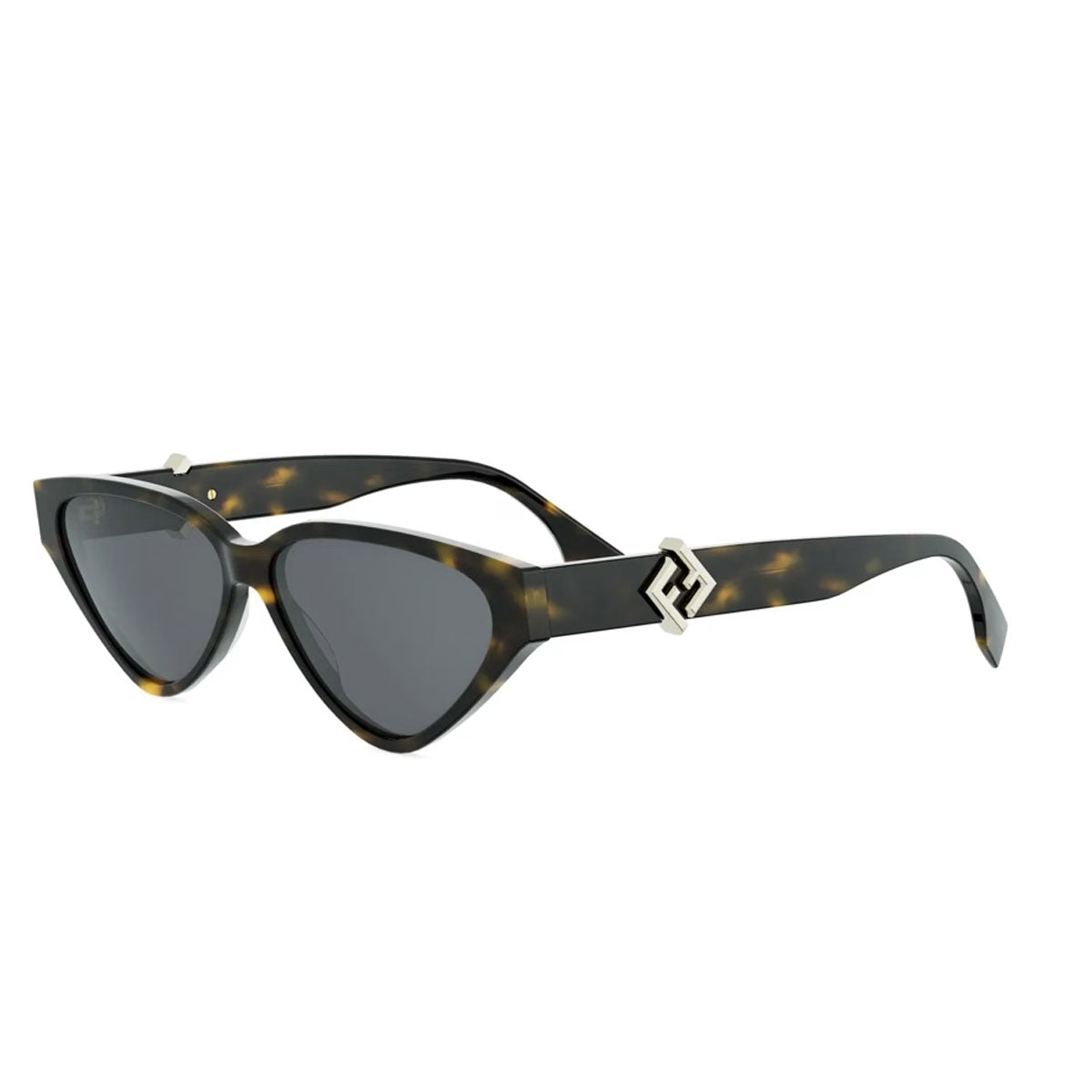 Entdecken Sie die zeitlose Eleganz der dreieckigen Cat-Eye-Sonnenbrillen, inspiriert vom Vintage-Charme und modern neu interpretiert. Das Design zeichnet sich durch das raffinierte FF Diamonds-Metalllogo aus, das in der Mitte der Bügel platziert ist und durch eine Full Rim-Fassung mit umhüllendem Profil hervorgehoben wird.