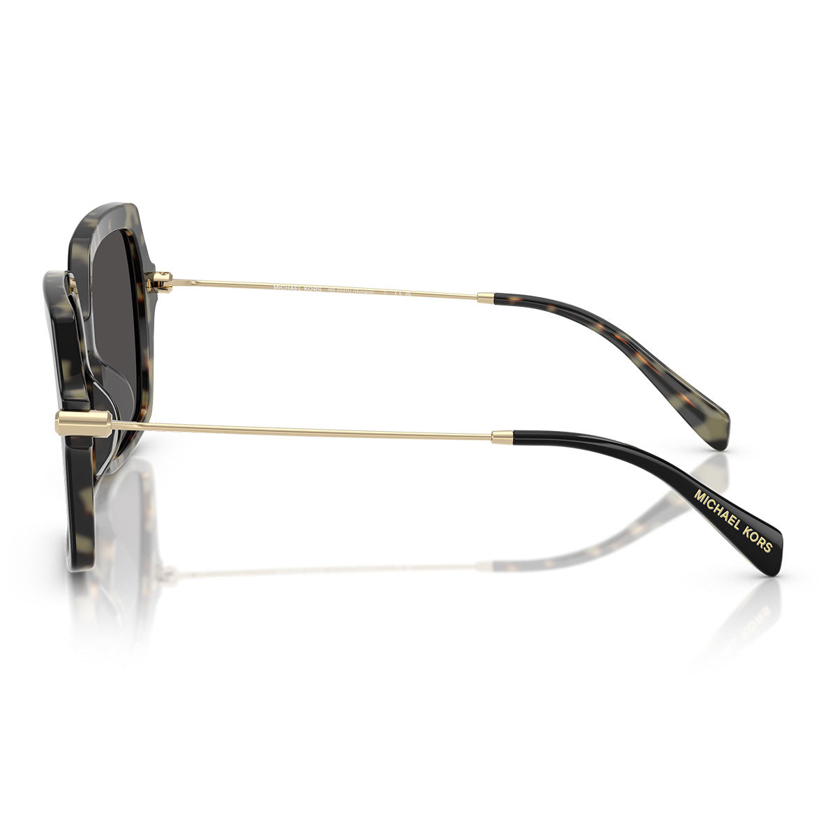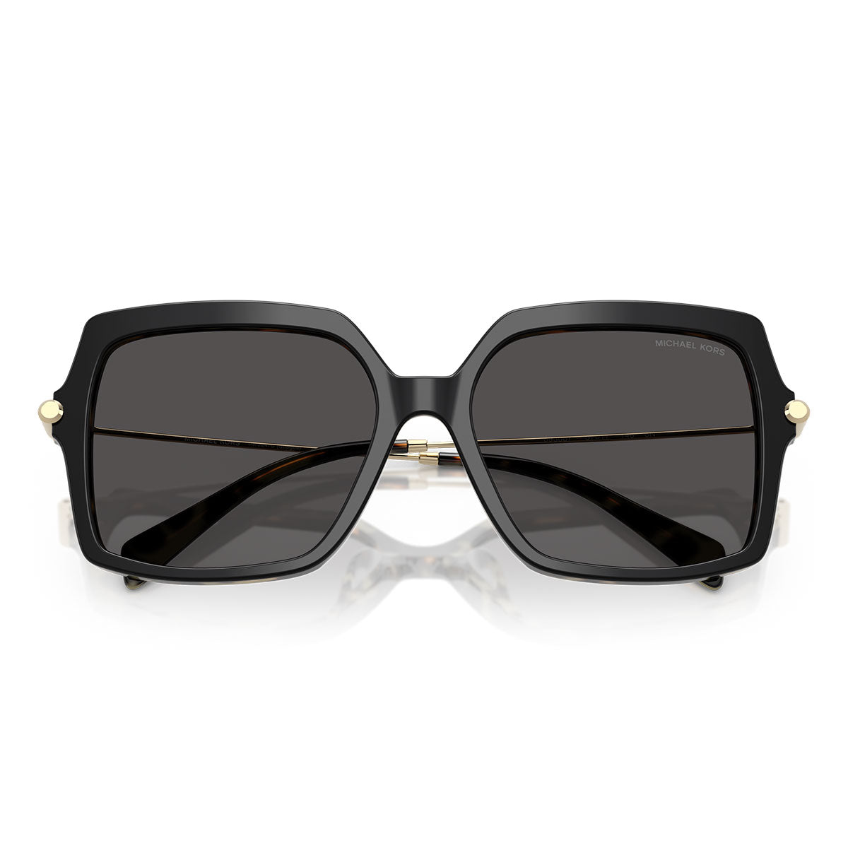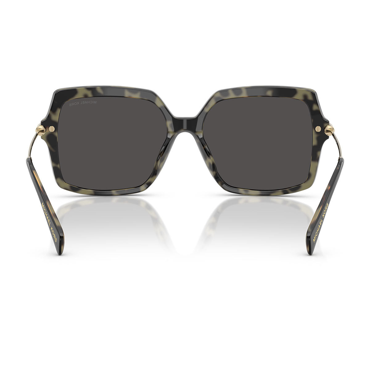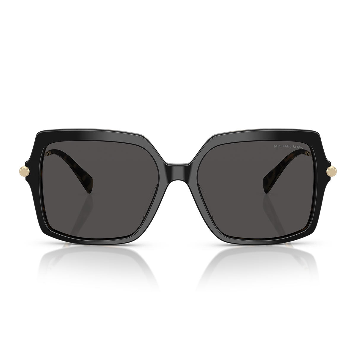 An oversized square silhouette crafted in elegant acetate sets the tone for an uncompromising style. The front Astor buttons—a nod to the acclaimed MK hardware—add a touch of industrial sophistication. Mixed-material construction: acetate front meets metal temples.