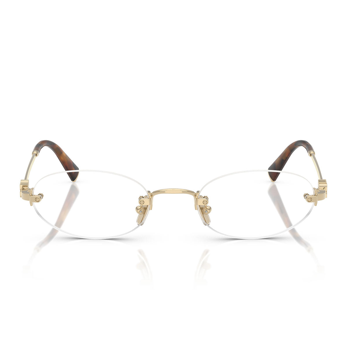 The Miu Miu MU53WV prescription glasses demonstrate how details, even the most delicate ones, can make a difference. This rimless model featuring oval optical lenses expresses a minimalist yet refined elegance, perfect for those who love a sophisticated and contemporary style.