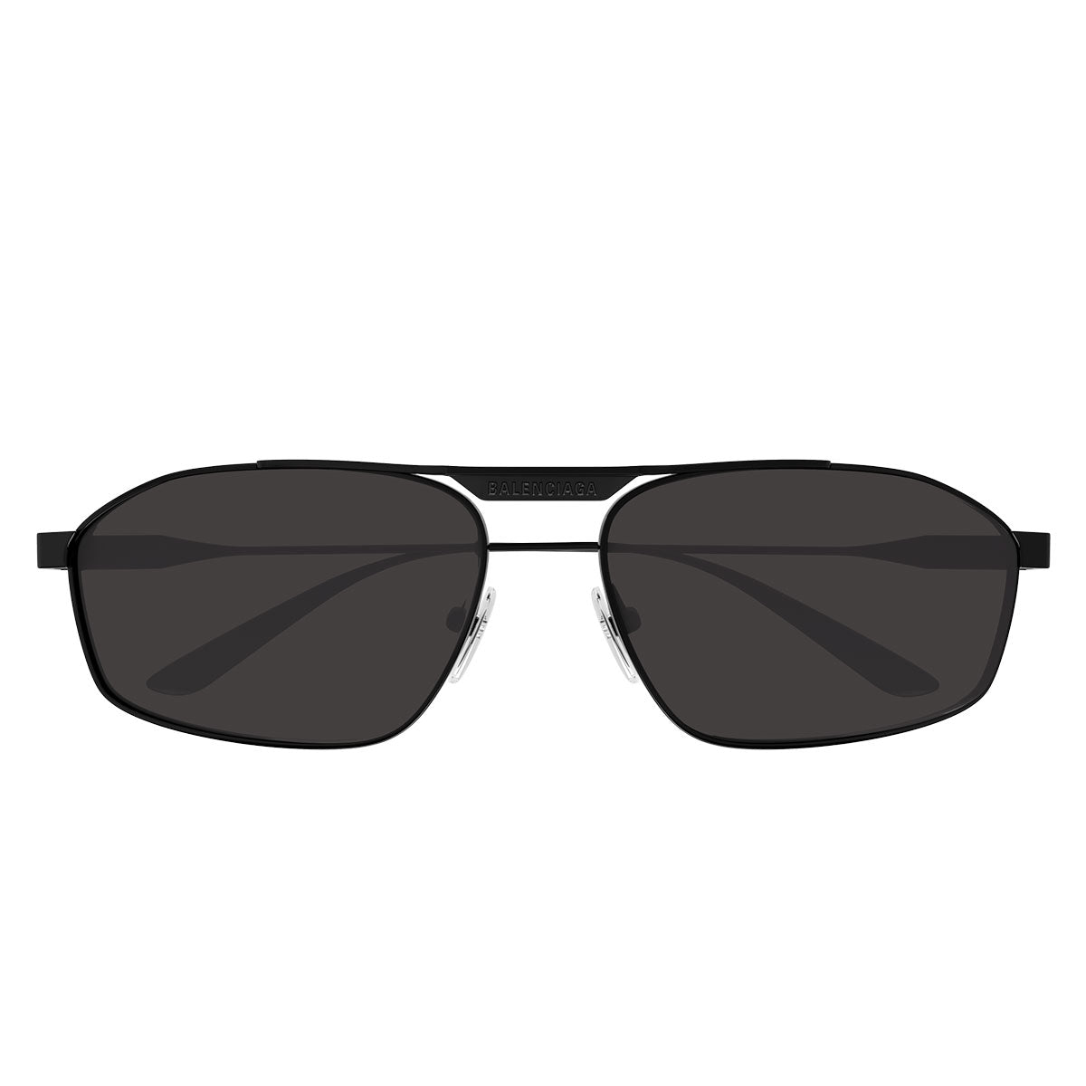 Sophisticated evolution of the Tag 2.0 concept, this sunglass model best represents the bold and minimalist style of the Maison. Made entirely of metal, the eyewear features a masculine rectangular shape with clean and modern lines. The distinctive detail is the Balenciaga logo laser-engraved on the metal bridge, a discreet yet recognizable signature that emphasizes the brand's identity. An essential and contemporary accessory, perfect for the man seeking an iconic and bold design.