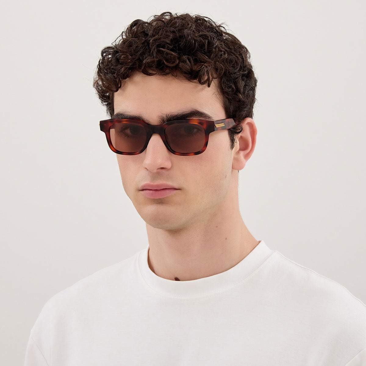 The Bottega Veneta BV1411S sunglasses stand out for their sophisticated and contemporary design. The front features an elongated ribbon, an iconic detail of the Maison, visible and elegantly integrated into the rectangular shape of the frame. Clean lines and high-quality materials make this model a distinctive accessory, ideal for those seeking a refined yet discreet style.