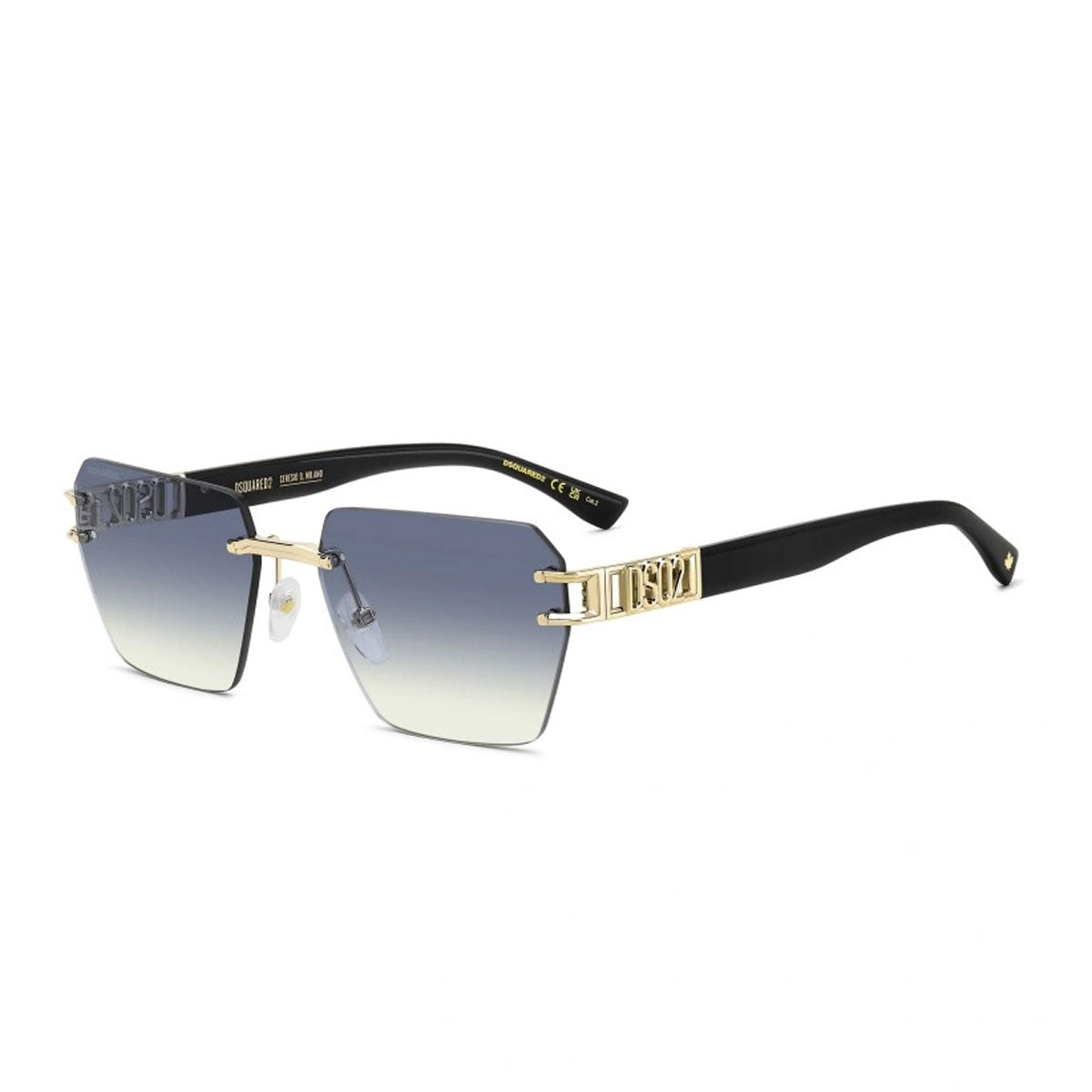The temples are embellished with the perforated DSQ2 logo, while the offset surface hinges, inspired by the famous rivets DSQUARED2, ensure stability and a solid, refined construction.