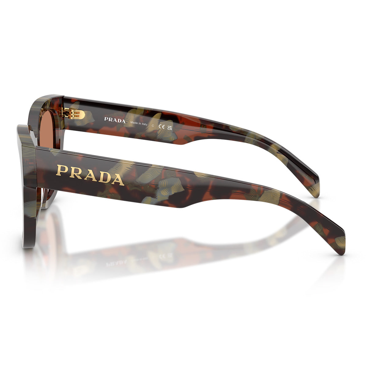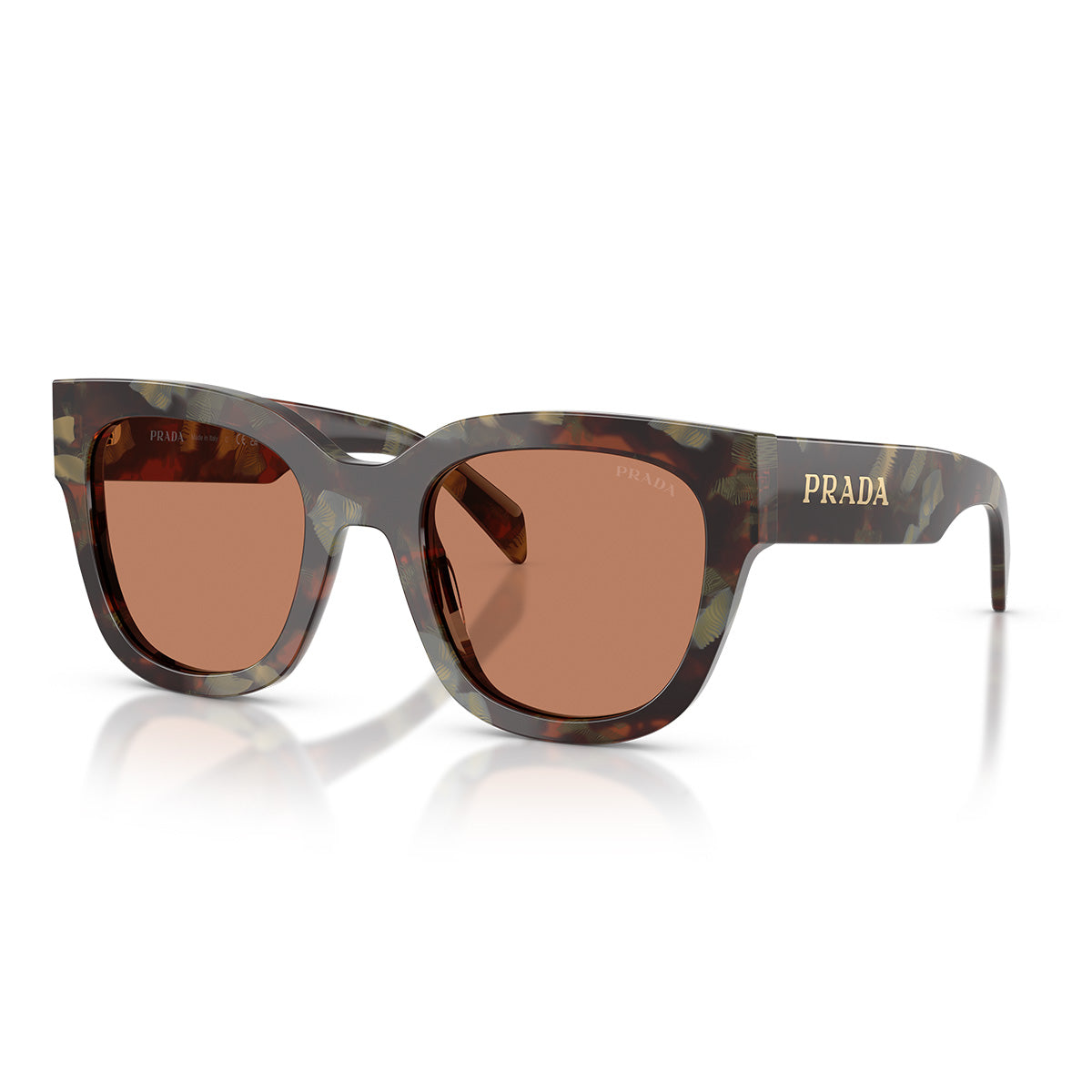 With a timeless cat-eye silhouette, the PRC04S sunglasses reinterpret everyday elegance with a refined and bold style. The acetate frame enhances the feminine lines of the design, while the wide temples stand out for the Prada logo in metal letters, individually hand-applied: a handcrafted detail that expresses care and prestige.