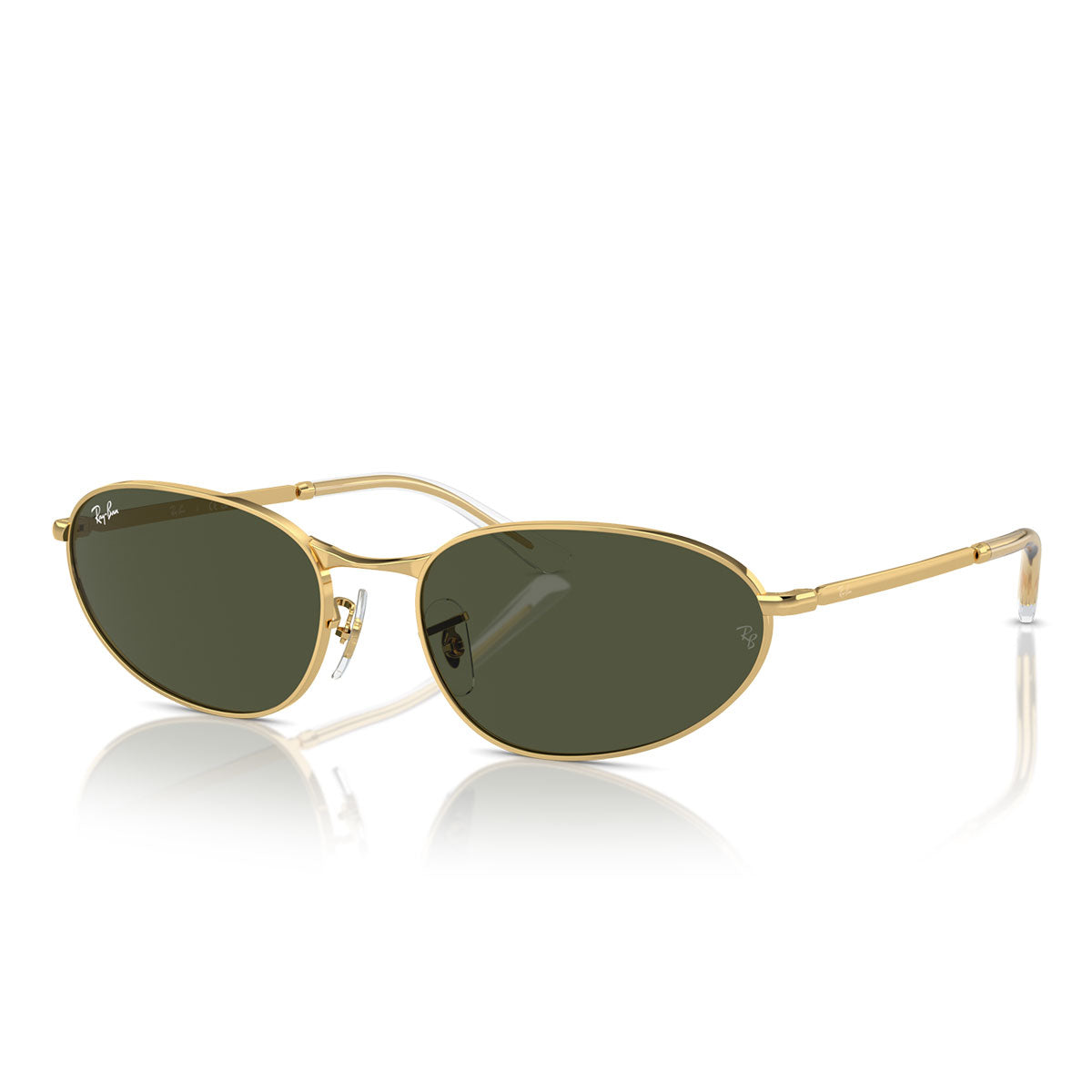 This innovative style combines an original oval lens shape with ultra-thin temples, for a bold and distinctive look. Available in a variety of classic colors, the elegant metal frame is paired with colored, gradient, and polarized lenses that add a touch of personality to every look. The curved bridge emphasizes the eyebrow line of this round-shaped model. The lenses, engraved with the Ray-Ban logo, are available in various dark and neutral shades, offering a timeless and trendy style.