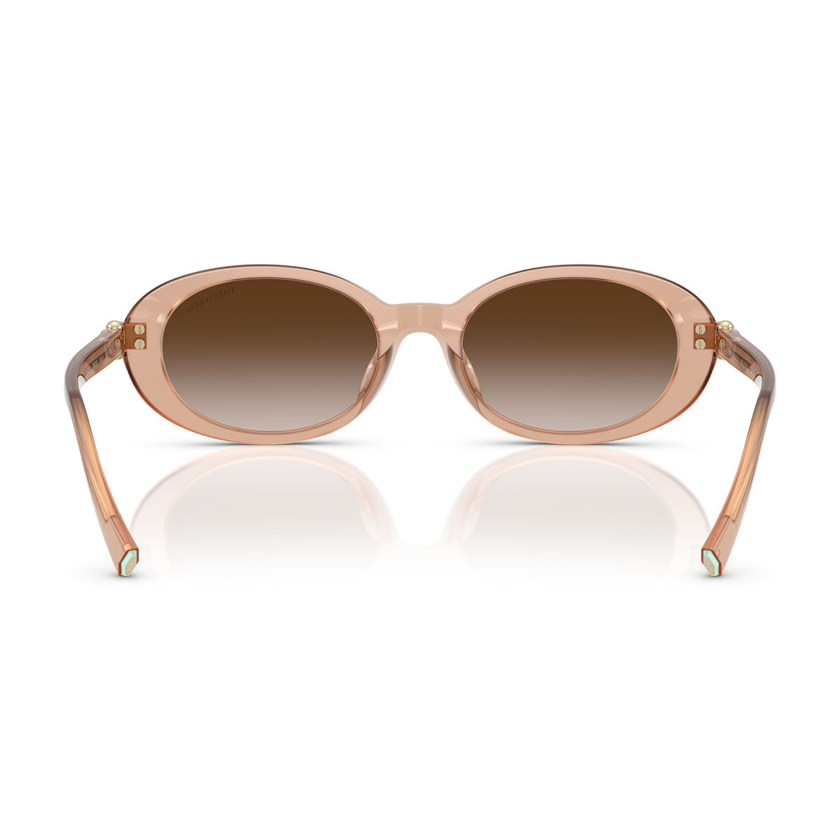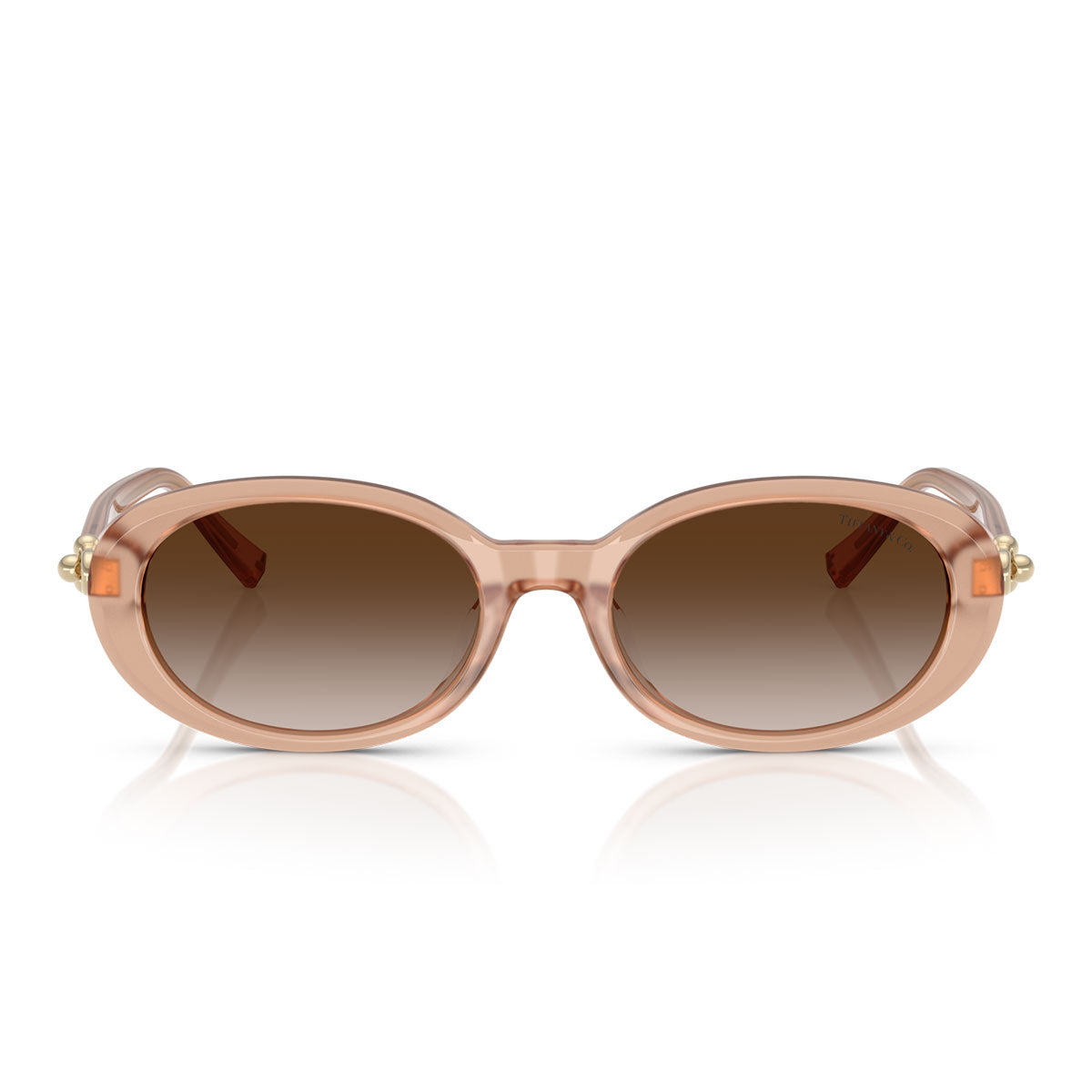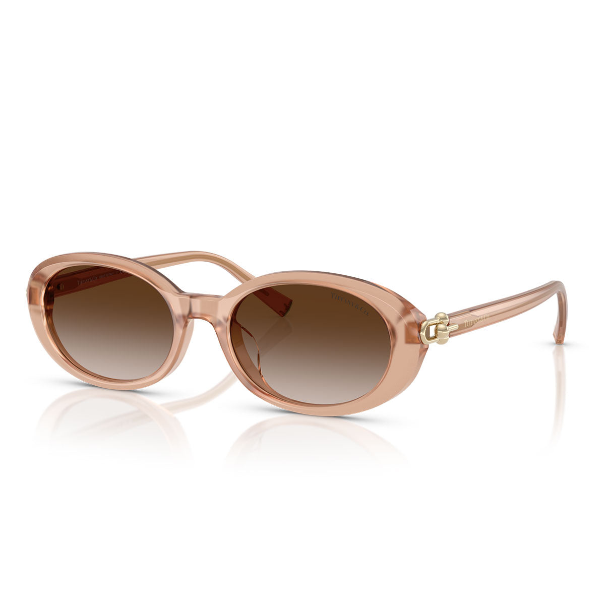 These oval sunglasses with a low bridge and tapered shape offer a modern and refined look. The hinges with link chain, inspired by the Tiffany HardWear jewelry collection, add a touch of sparkle to the bio-acetate frame, with some color variants featuring Tiffany Blue® gradient lenses. Elegant and subtle brand details, such as the engraved logo on the temples and the temple tips in Tiffany Blue® enamel, complete the design. A modern oval shape available in a selection of colors ranging from black, havana and white, to opal nude and chocolate truffle, for a versatile and sophisticated style.