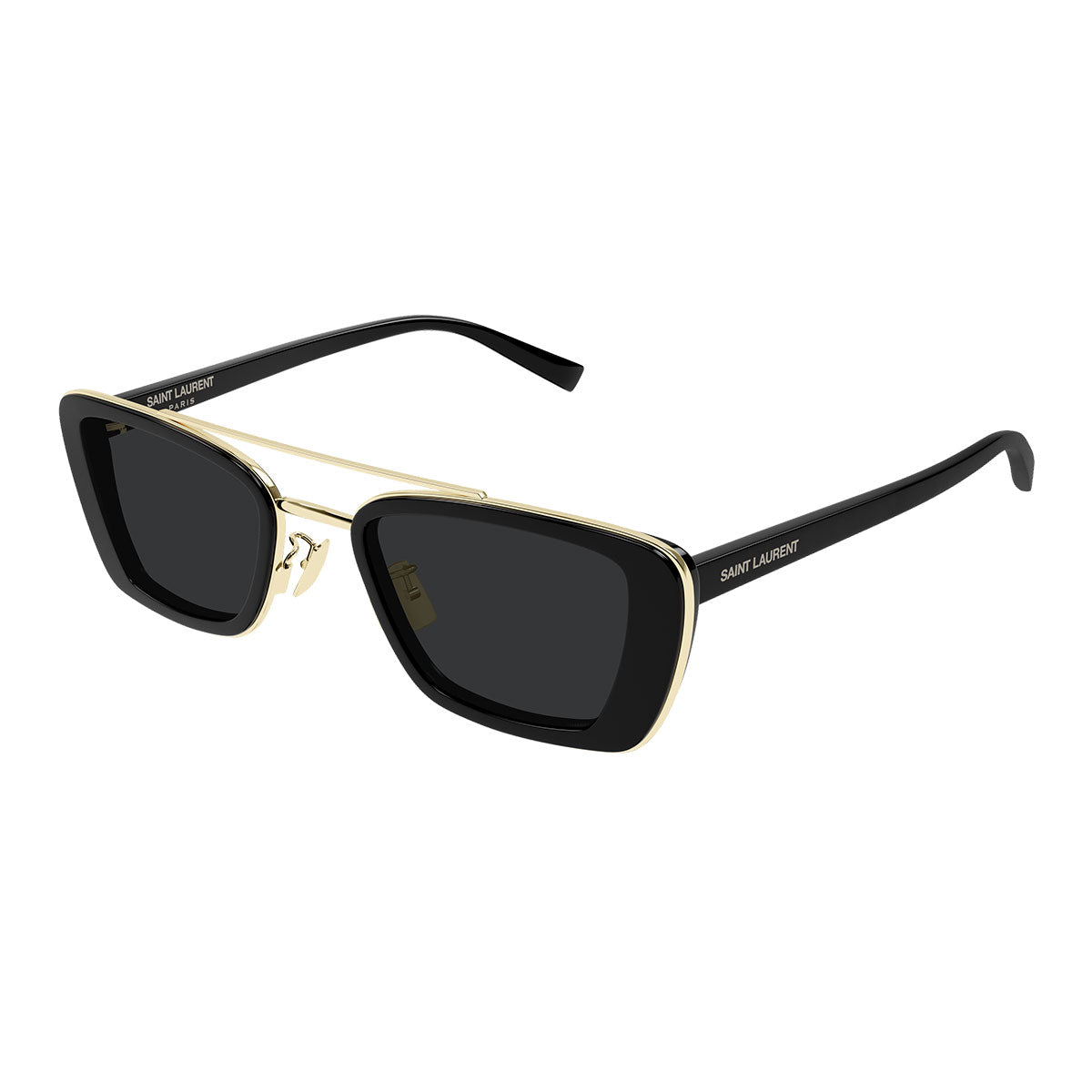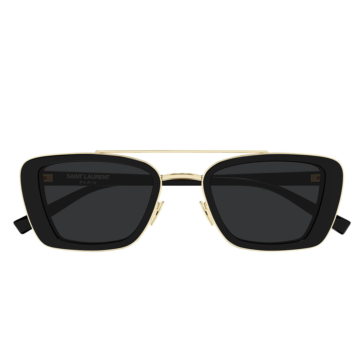 Las gafas de sol Saint Laurent SL 825 pertenecen a una nueva línea de inspiración vintage, que fusiona elegancia retro y diseño contemporáneo. La estructura de acetato unida a un aro de metal aporta carácter y sofisticación, mientras que el logo Saint Laurent adhesivo de metal aplicado en ambas patillas añade un toque distintivo y valioso. La forma rectangular suave con doble puente expresa equilibrio y estilo, perfecta para quienes buscan un accesorio icónico y de tendencia.