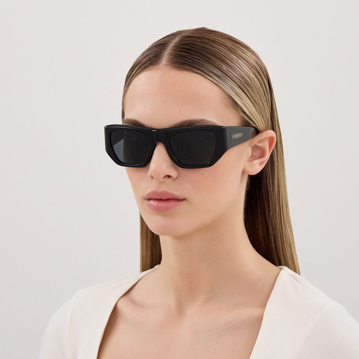 Las gafas de sol Saint Laurent SL 740 celebran el regreso del logo vintage, elegantemente grabado en ambas patillas, en homenaje al icónico patrimonio de la Maison. La montura femenina clásica se distingue por líneas inconfundibles e innovadoras, enriquecidas con volúmenes audaces que expresan carácter y modernidad. Las patillas simples y curvadas, con terminales más delgados, aseguran comodidad y sofisticación, haciendo de este modelo un perfecto equilibrio entre elegancia retro y diseño contemporáneo.