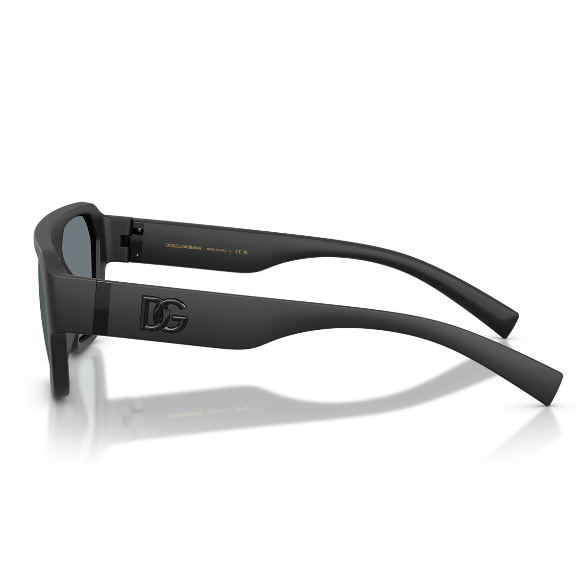 Estas gafas de sol rectangulares flat-top se distinguen por la línea superior plana y la silueta moderna, perfecta para quienes buscan un accesorio con carácter fuerte y distintivo. El diseño se realza con el icónico DG Crossed Logo en las patillas y un refinado inserto metálico en la bisagra, que añade un toque de sofisticada elegancia.