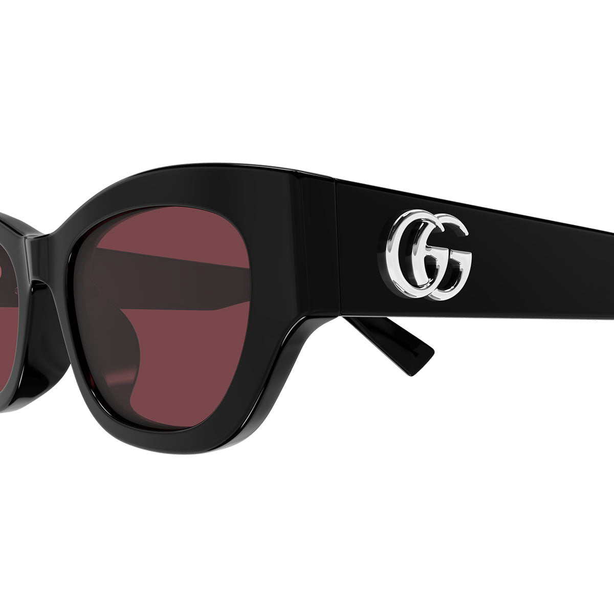 La forma cat-eye cuadrada resalta la feminidad con líneas estructuradas y modernas, mientras que el refinado detalle Double G refuerza la identidad de la marca. La paleta de colores oscuros, comerciales pero elegantes, hace que estas gafas sean sumamente versátiles y perfectas para looks sofisticados y urbanos y elegantes.