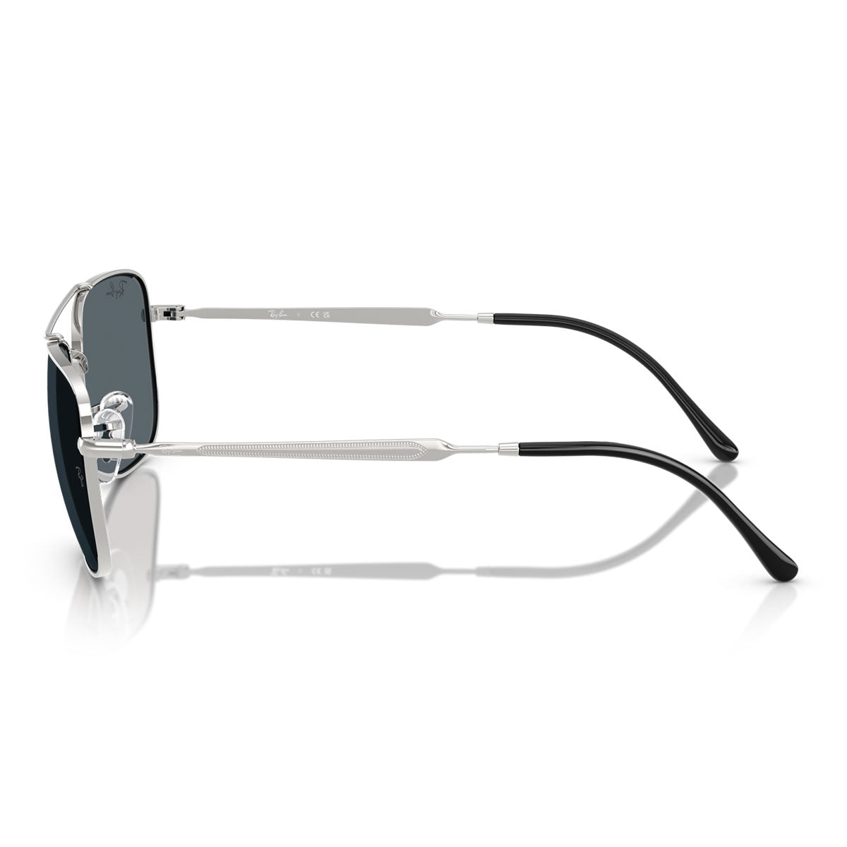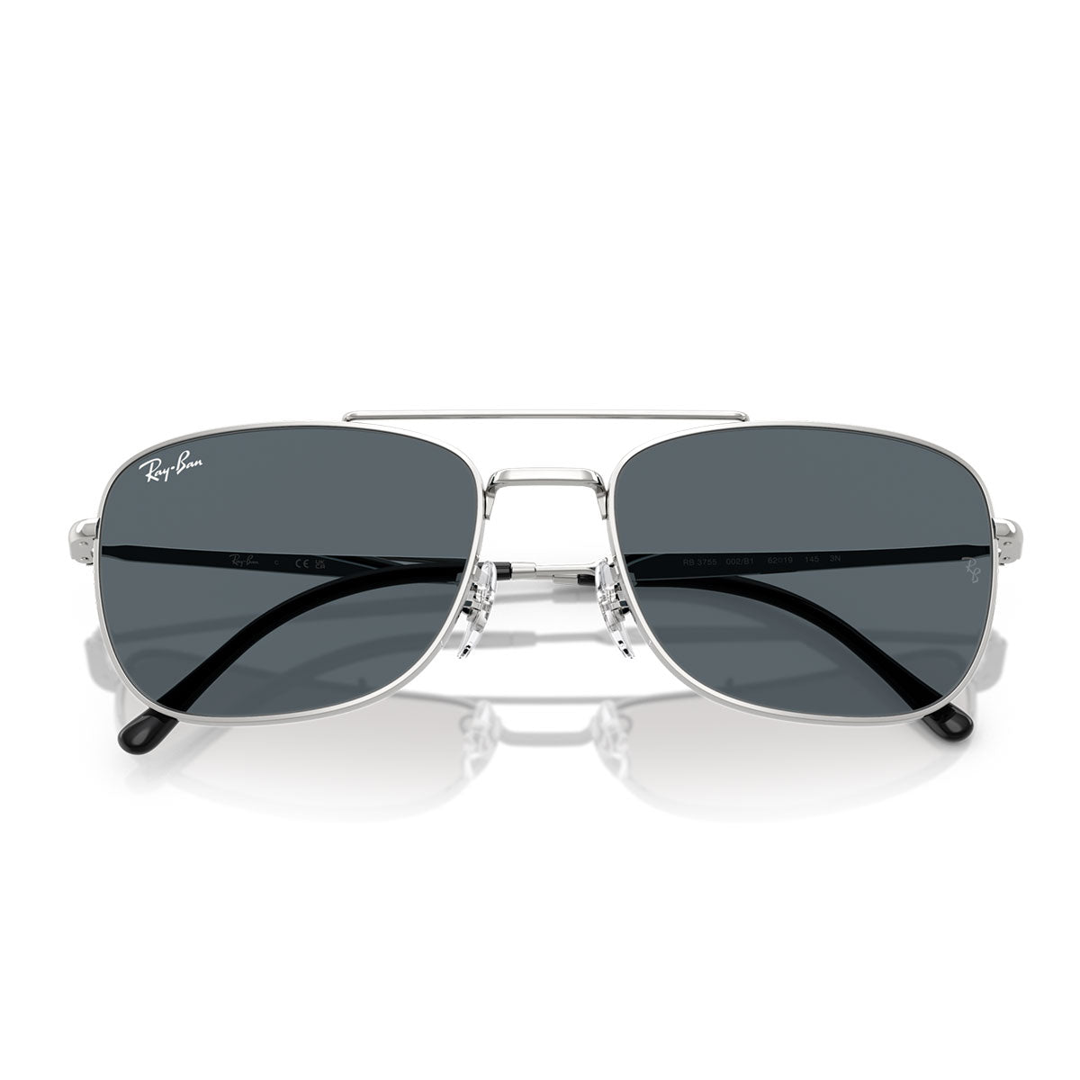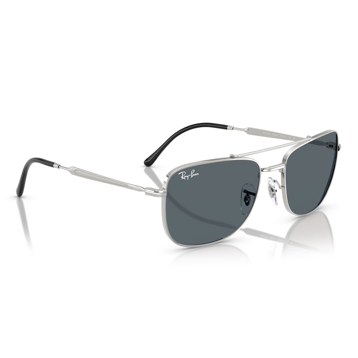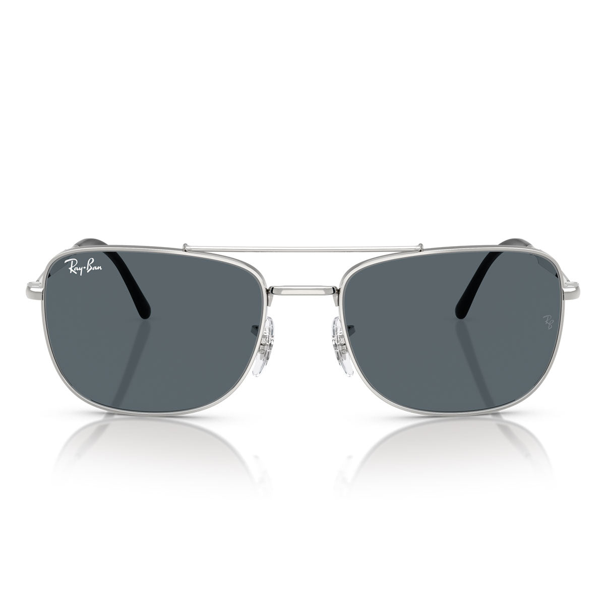 Montures en métal iconique avec front carré, double pont et plaquettes de nez réglables. Le design des branches sculptées présente le légendaire logo Ray-Ban et est complété par des embouts en plastique de couleur contrastée.