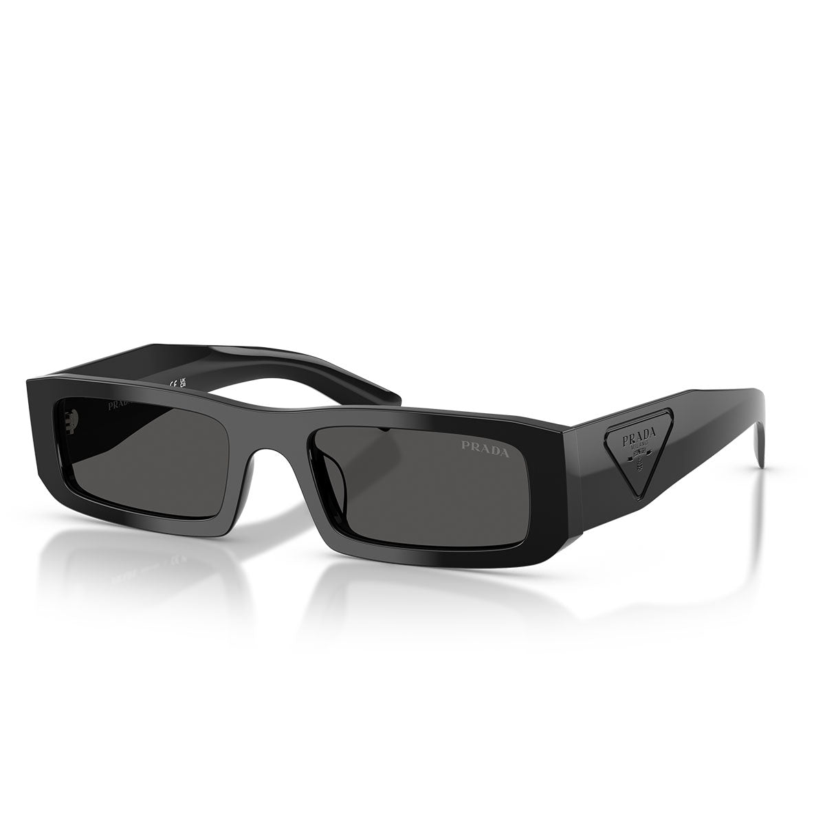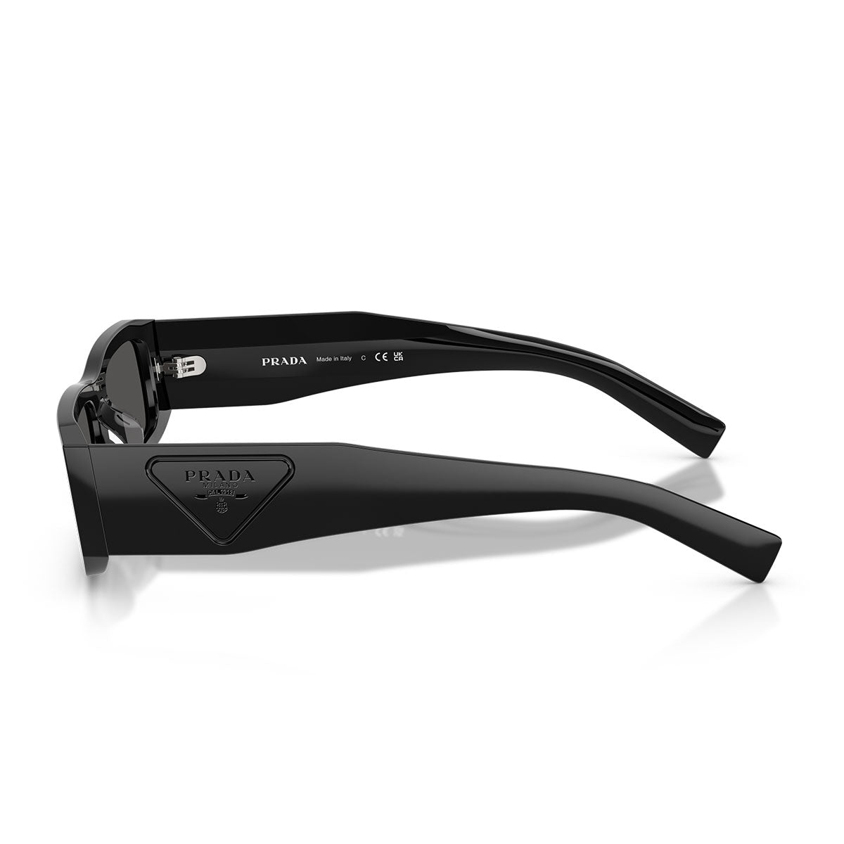 Les branches sont ornées du logo triangulaire iconique Prada, gravé avec précision et parfaitement coordonné avec la couleur de l’acétate haute densité, pour un look raffiné et reconnaissable.