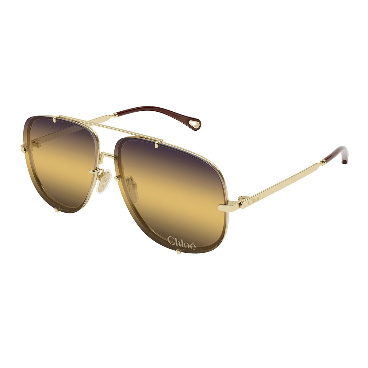 Les Chloé CH0348S réinterprètent avec élégance la forme classique caravane, l’enrichissant d’un spectaculaire verre à triple dégradé qui surmonte la monture, créant un effet visuel léger, féminin et d’une grande raffinement. Un modèle emblématique qui exprime pleinement l’ADN raffiné et romantique de Chloé.