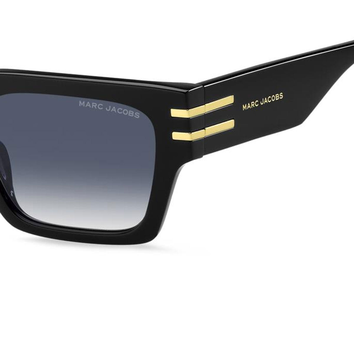 La structure solide mais légère garantit un confort lors de l'utilisation quotidienne, tandis que les verres foncés offrent une excellente protection contre les rayons du soleil, tout en maintenant une vision claire et sûre. La philosophie de Marc Jacobs se reflète dans les détails soigneusement étudiés, faisant de ces lunettes un accessoire parfait pour ceux qui recherchent un équilibre entre élégance et audace.