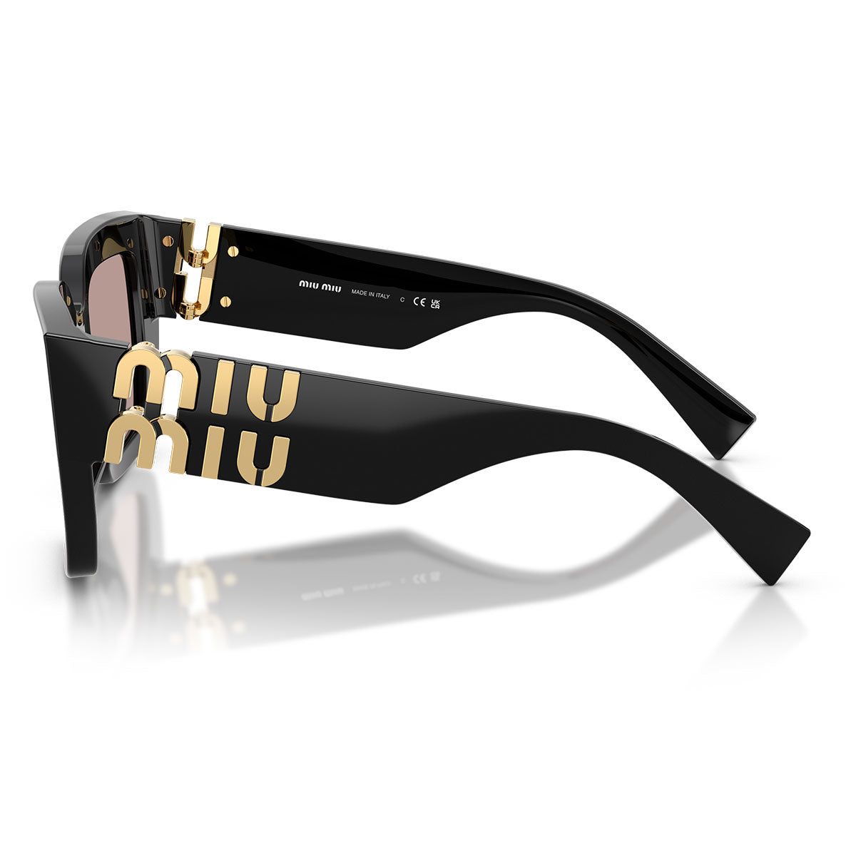 Les branches épaisses en acétate se distinguent par le logo vertical iconique Miu Miu, parfaitement intégré dans le mécanisme raffiné de la charnière. Disponibles en plusieurs combinaisons de couleurs pour la monture et les verres, ces lunettes sont conçues pour ceux qui aiment oser avec style.