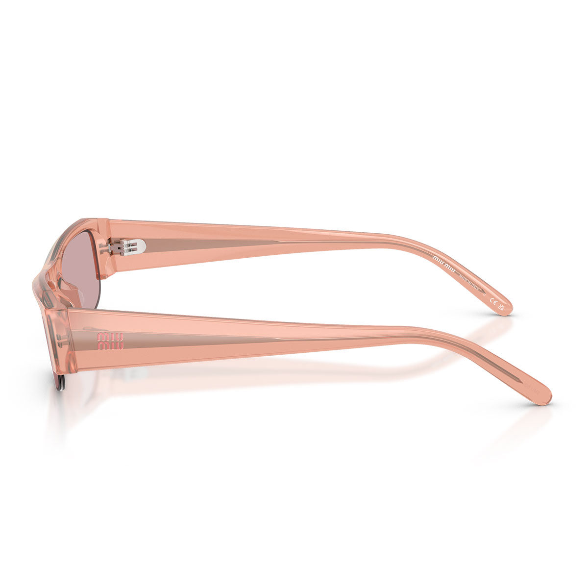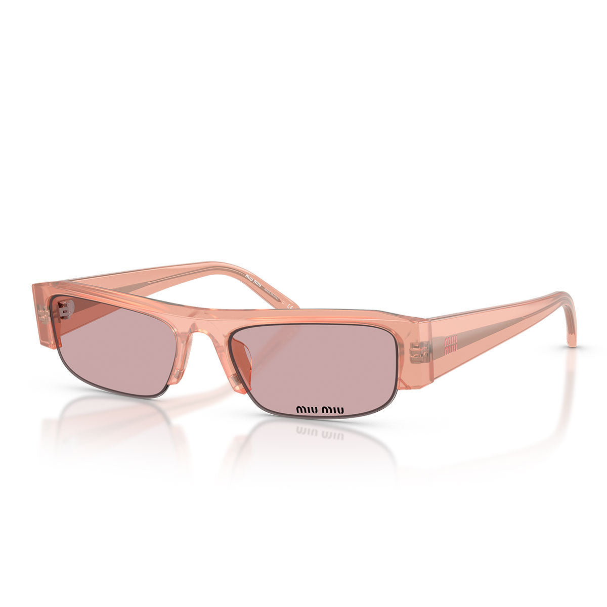 Les branches fines, ornées du logo vertical Miu Miu en métal doré, ajoutent une touche d’éclat sans alourdir le look, en conservant une esthétique épurée et moderne.