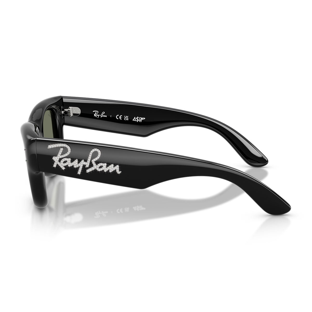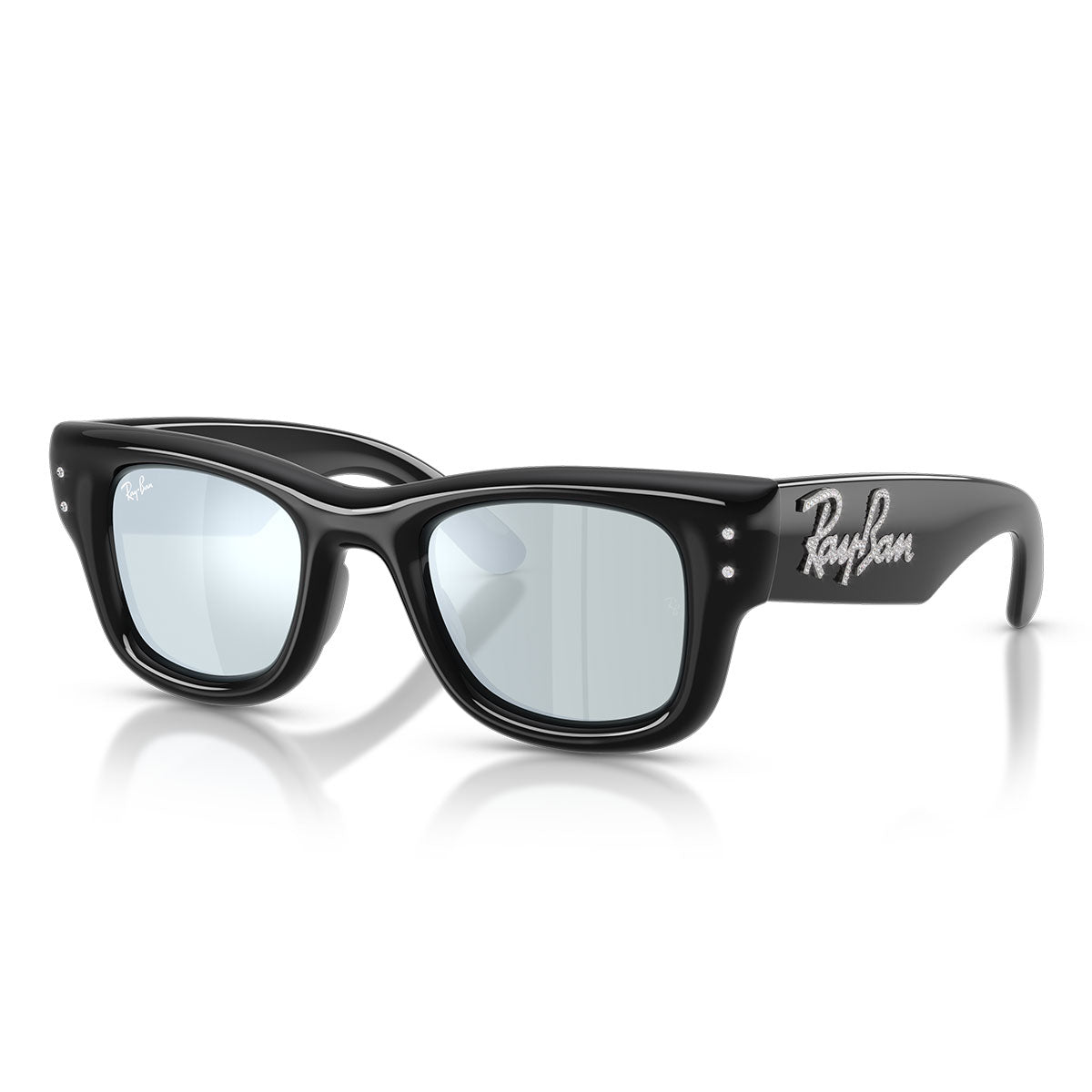 Ray-Ban Lunettes de Soleil RB4940B 686430 Wayfarer Puffer X ASAP Rocky Noir avec Strass/Vert Miroir Argent Unisexe