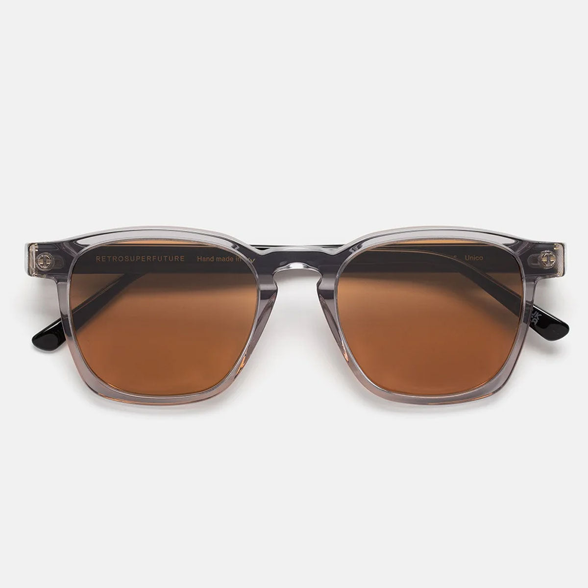 Les Lunettes de soleil Retrosuperfuture M40 Unico avec monture carrée en acétate sont l'accessoire parfait pour ceux qui aiment un style affirmé et contemporain. La couleur noir avec transparence à l'avant et les verres marron se combinent pour offrir un look moderne et sophistiqué, idéal pour ceux qui désirent une touche d'originalité et de caractère dans leur tenue.
