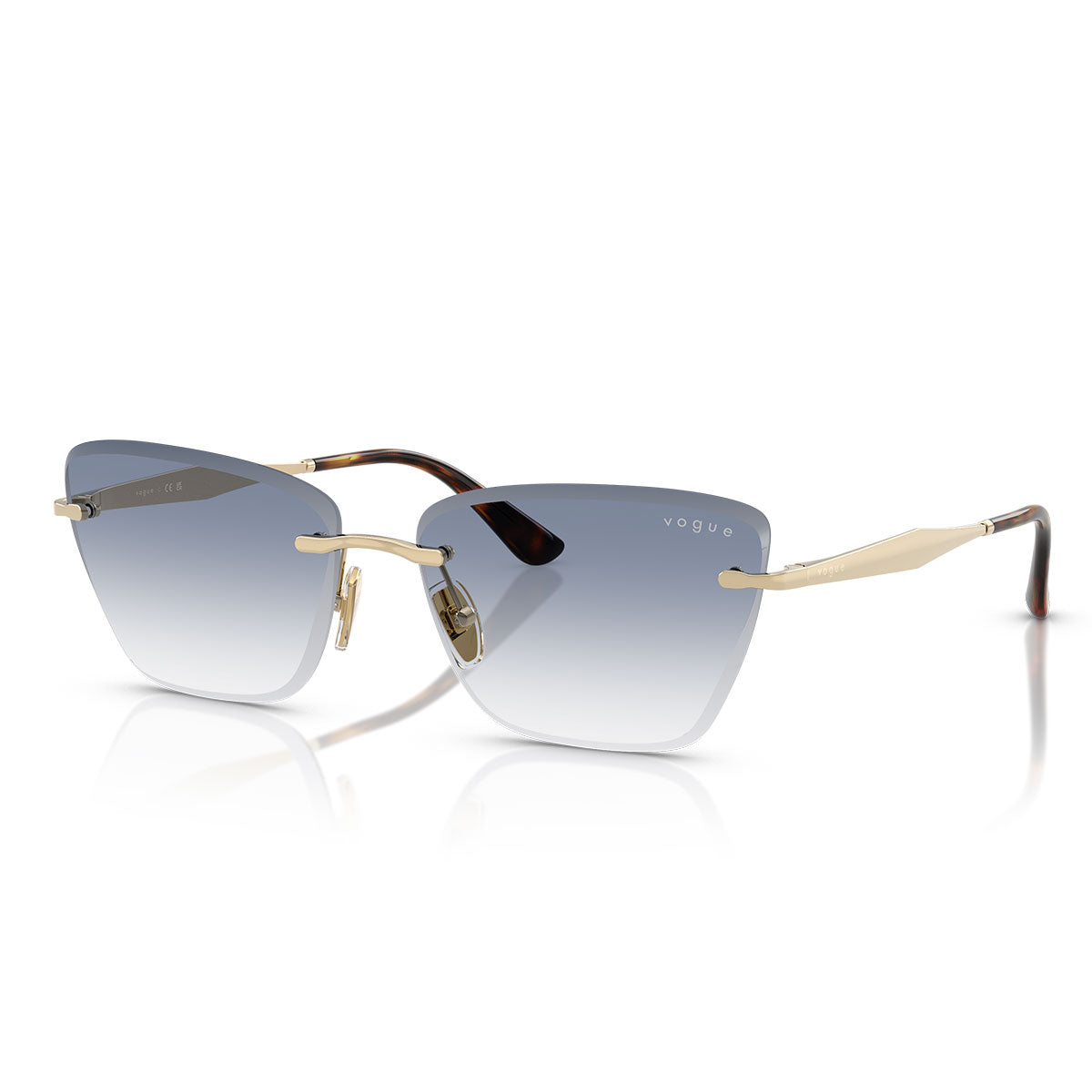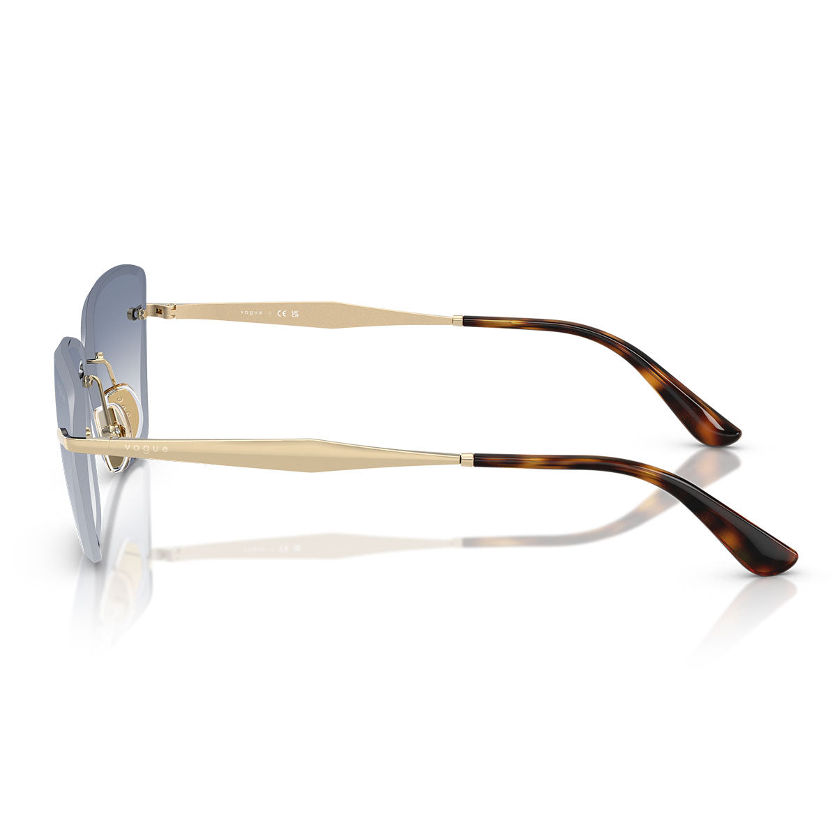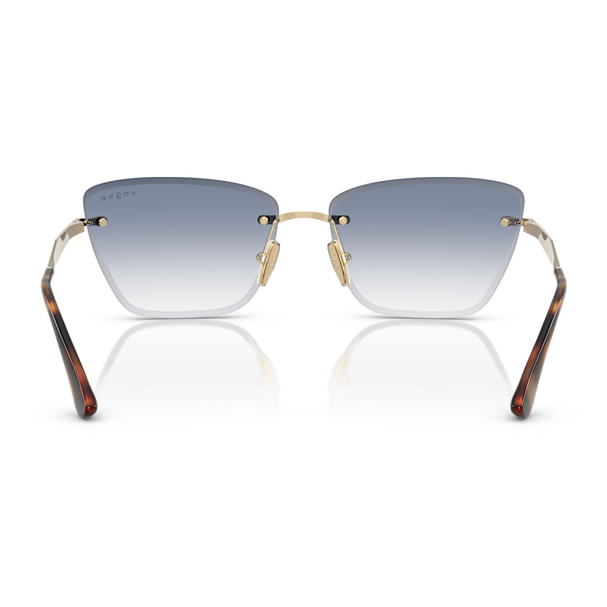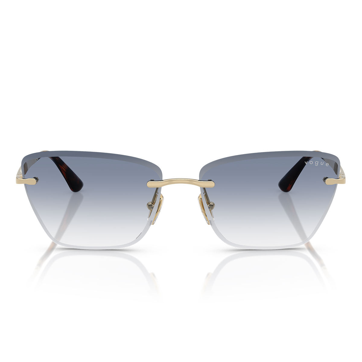 La structure sans monture met en valeur la pureté des formes, tandis que les branches fines en métal ajoutent de l’élégance et garantissent un port confortable et ultraléger. Le tout est rehaussé par le logo Vogue Eyewear sur les branches, signature emblématique de la marque.