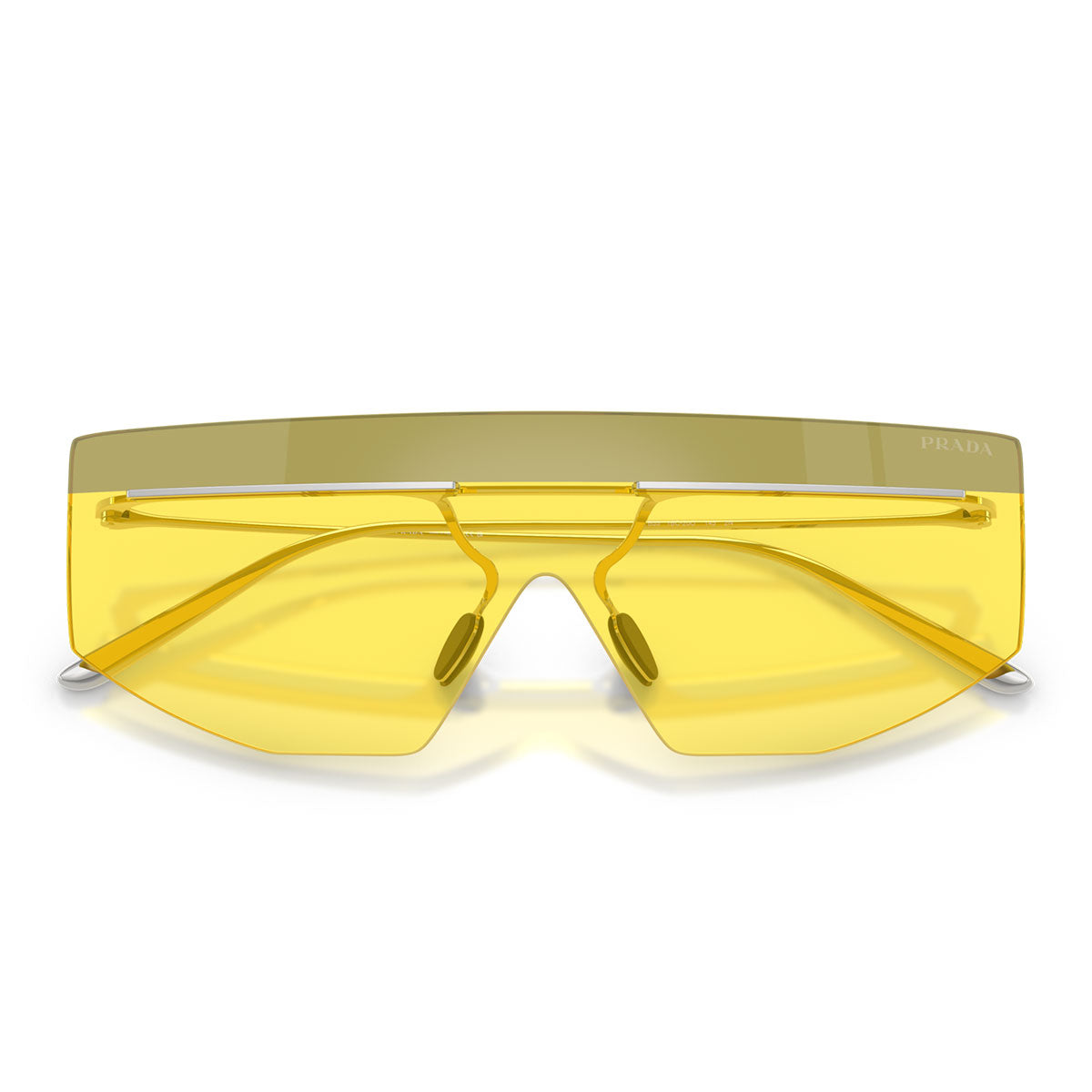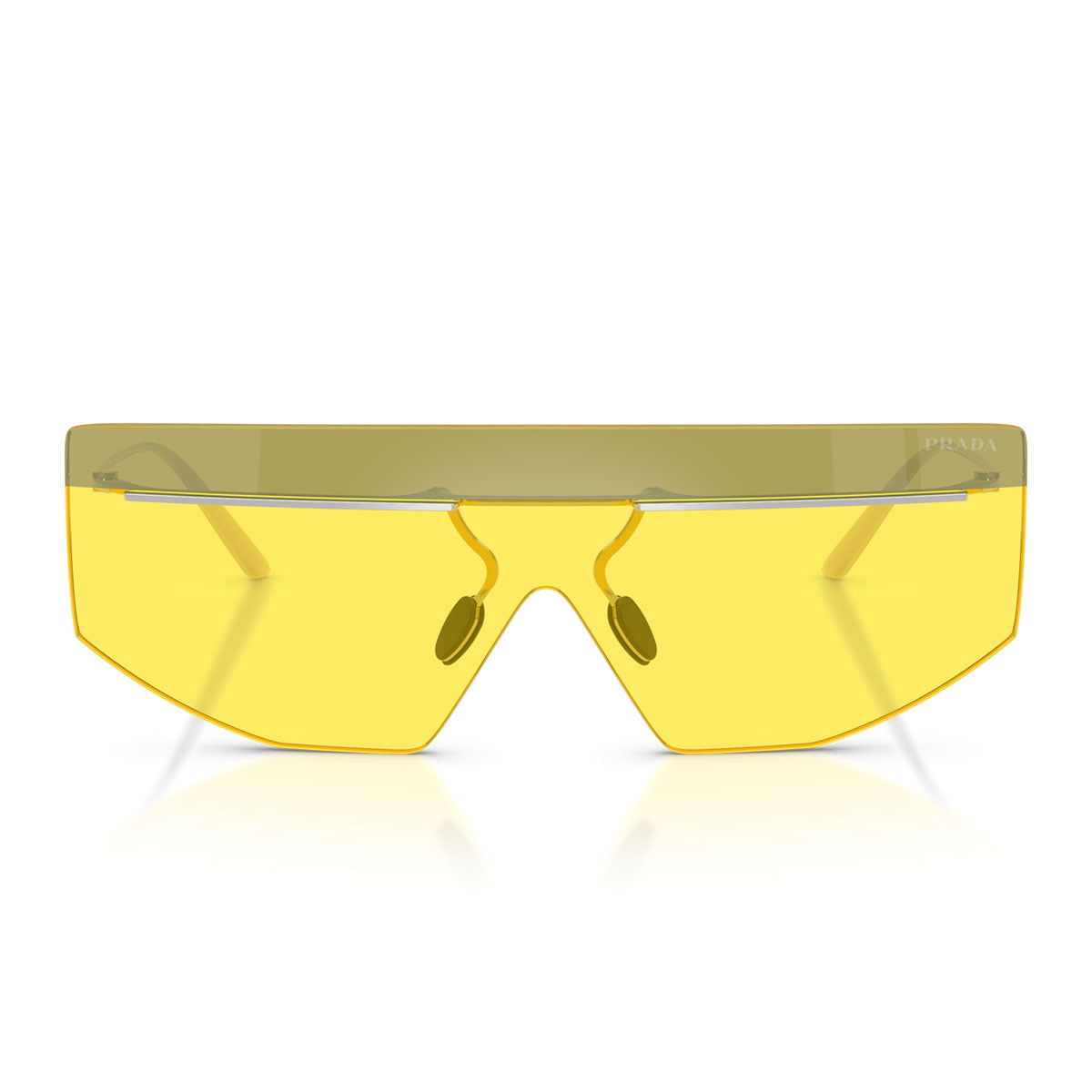 Le lenti a forma di maschera, abbinate a una particolare barra metallica sulla parte superiore e a naselli regolabili, offrono un design unico e moderno. La montatura in metallo argentato, con il discreto logo Prada sulle punte delle asticelle, si sposa perfettamente con lenti dai colori audaci, in opzioni piene o bicolore. Gli occhiali da sole Prada PRB55S sono perfetti per chi cerca uno stile all'avanguardia e una visione del futuro, unendo eleganza e innovazione.