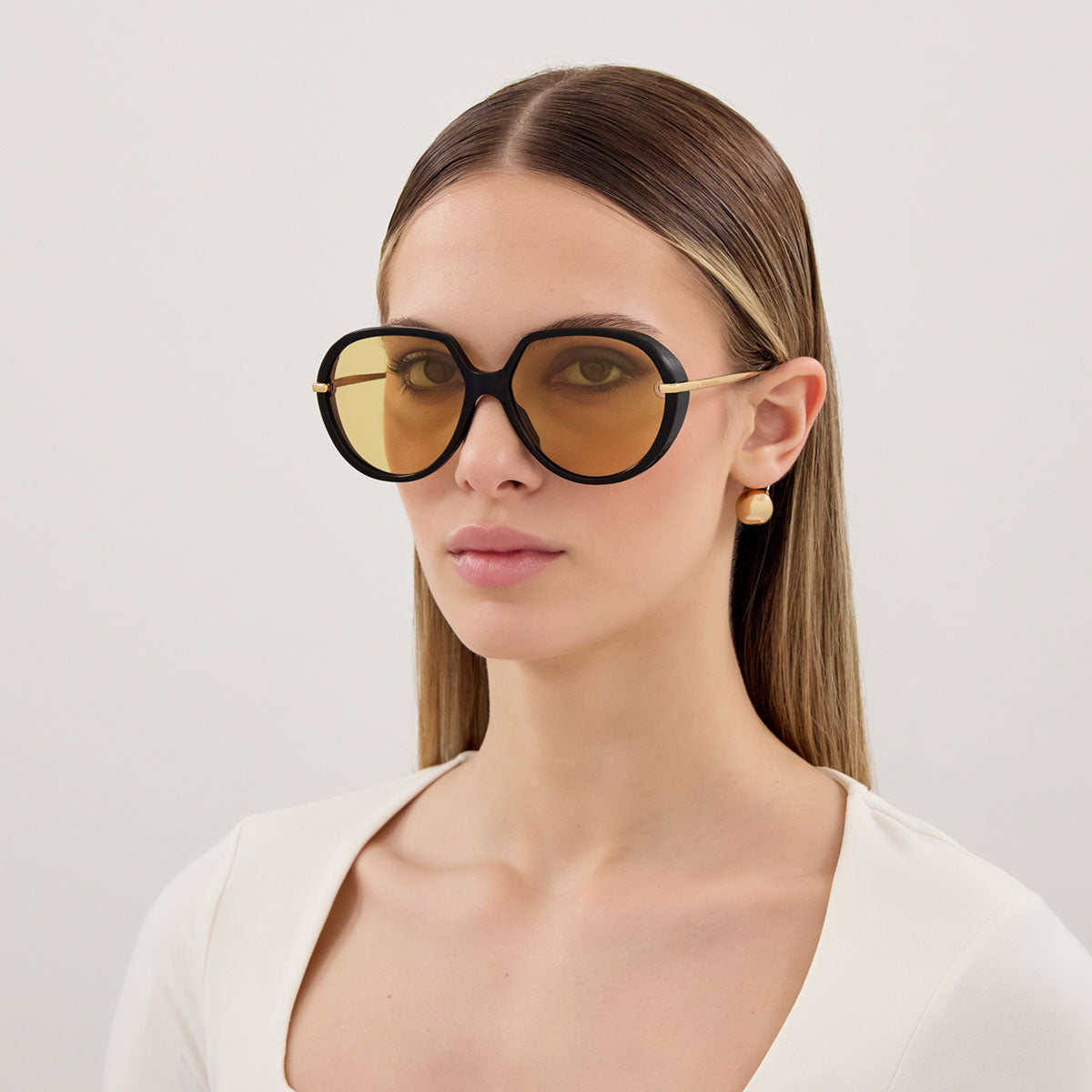Bottega Veneta presenta gli occhiali da sole BV1436S, una montatura rotonda oversize dallo stile inconfondibilmente vintage. Il design iconico è arricchito da un’apertura a goccia sul terminale, elemento distintivo che esalta l'estetica raffinata del modello. Il musetto in metallo abbraccia elegantemente il frontale, passando attraverso un foro nelle lenti, e si completa con un piccolo spoiler laterale per un tocco contemporaneo e sofisticato. Un accessorio audace, perfetto per chi cerca originalità e alta artigianalità.