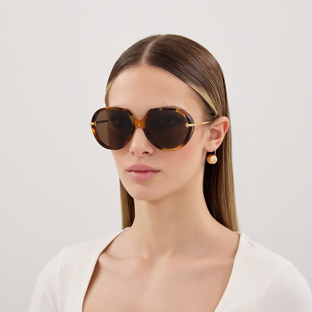 Bottega Veneta presenta gli occhiali da sole BV1436S, una montatura rotonda oversize dallo stile inconfondibilmente vintage. Il design iconico è arricchito da un’apertura a goccia sul terminale, elemento distintivo che esalta l'estetica raffinata del modello. Il musetto in metallo abbraccia elegantemente il frontale, passando attraverso un foro nelle lenti, e si completa con un piccolo spoiler laterale per un tocco contemporaneo e sofisticato. Un accessorio audace, perfetto per chi cerca originalità e alta artigianalità.