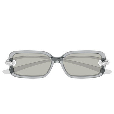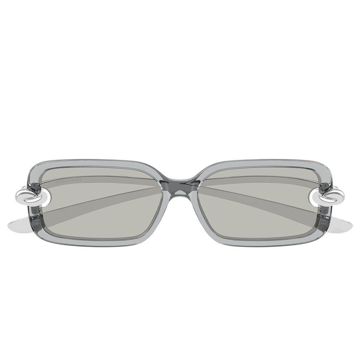 Elemento protagonista è l’iconico nodo Bottega Veneta, che abbraccia la montatura attraversando la lente, trasformando l’occhiale in una vera scultura di design. Questo dettaglio distintivo crea un effetto materico unico, enfatizzato dal raffinato mix di plastica e metallo, che aggiunge profondità, contrasto e prestigio al modello.