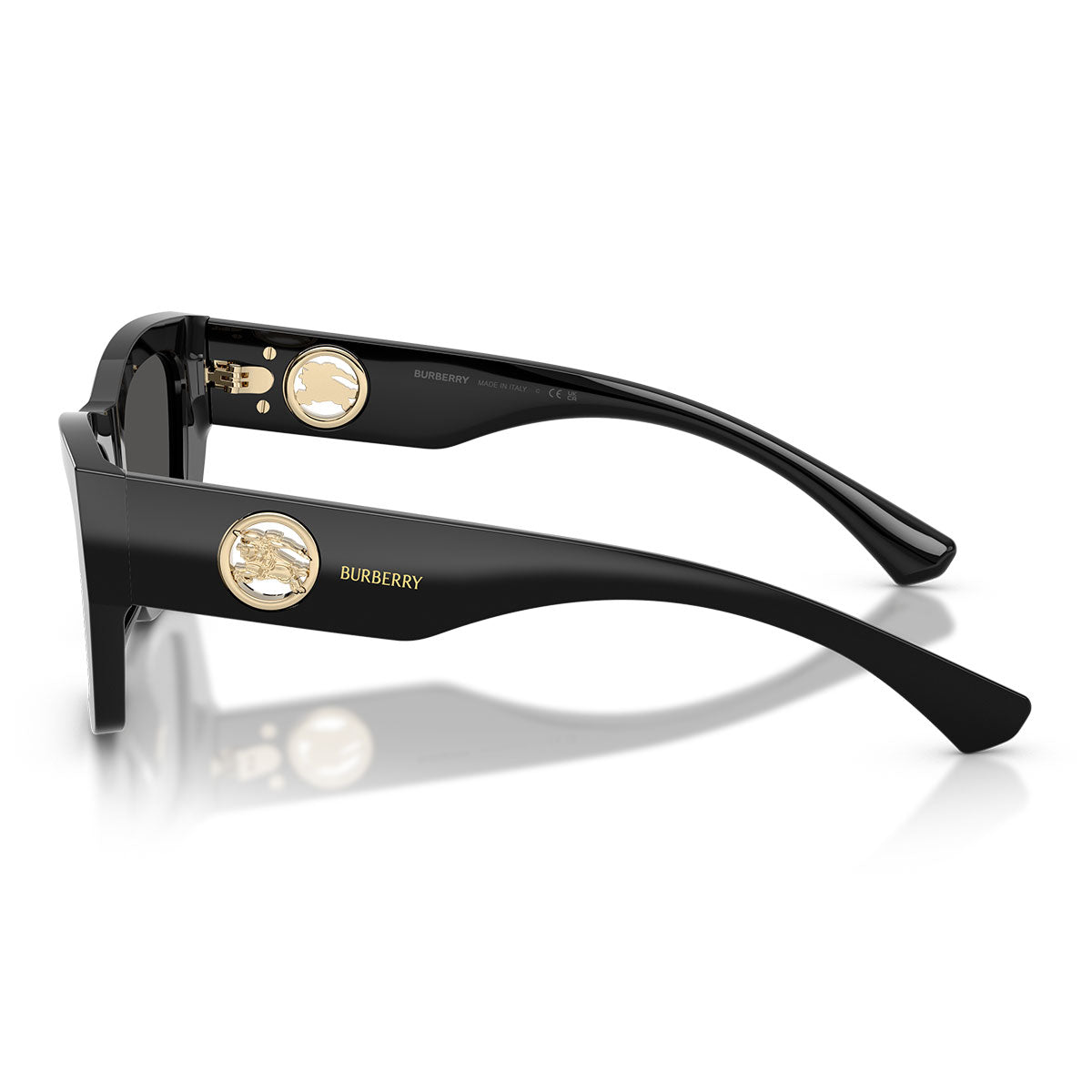 Le lenti dalle tonalità classiche e intense sono arricchite dal logo Equestrian Knight Design inciso sulla lente sinistra, ulteriore simbolo di autenticità e prestigio Burberry.