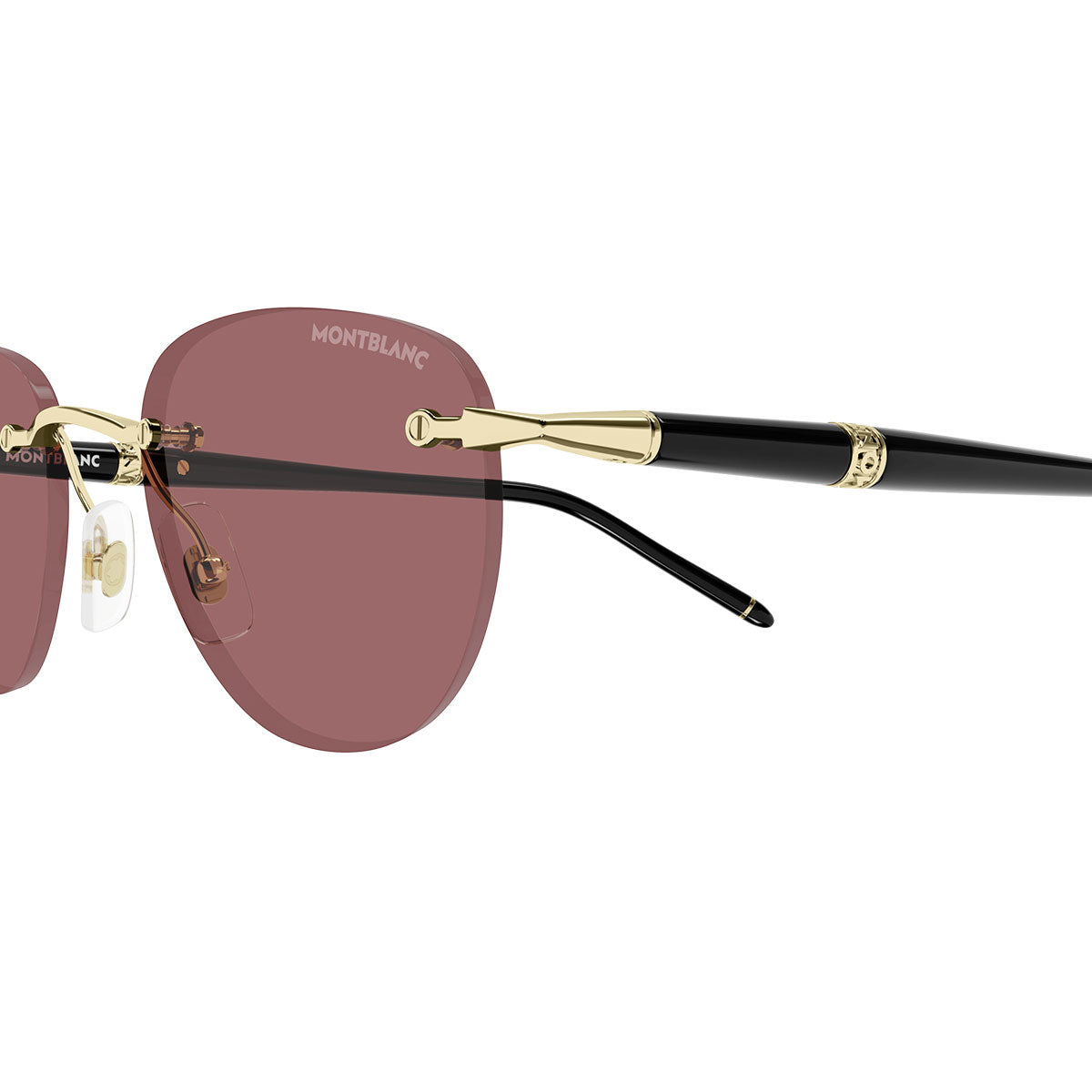 Le lenti dallo spessore deciso si uniscono a leggere aste iniettate, il cui design richiama le forme iconiche delle penne Montblanc. La firma del Brand si ritrova nell’anello in metallo con inciso il nome Montblanc e in un discreto dettaglio smaltato sul terminale, simbolo di sobrietà e riconoscibilità.