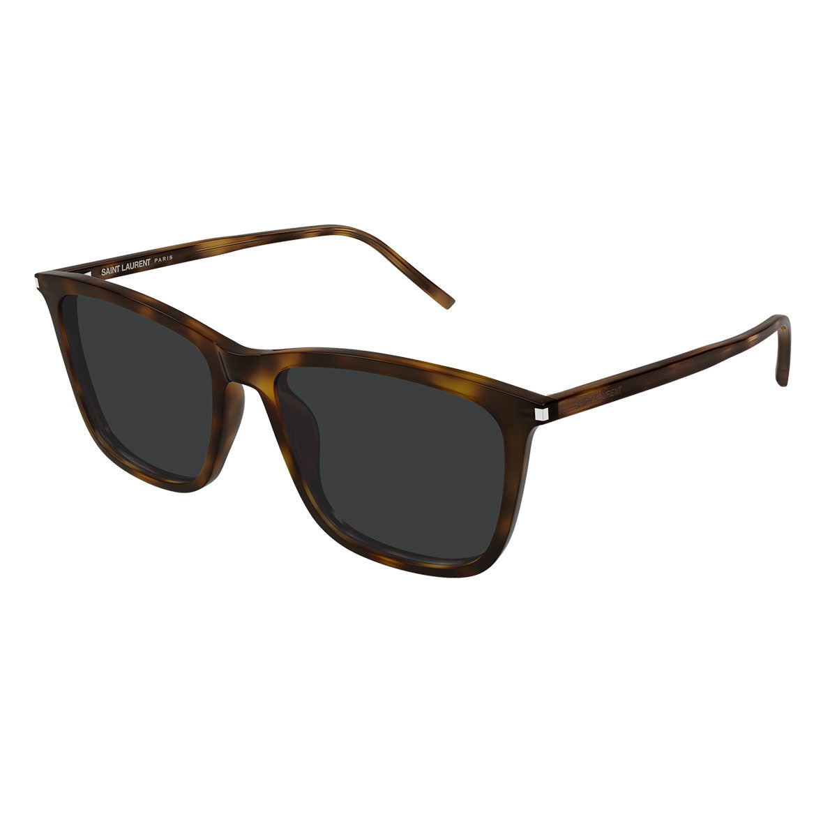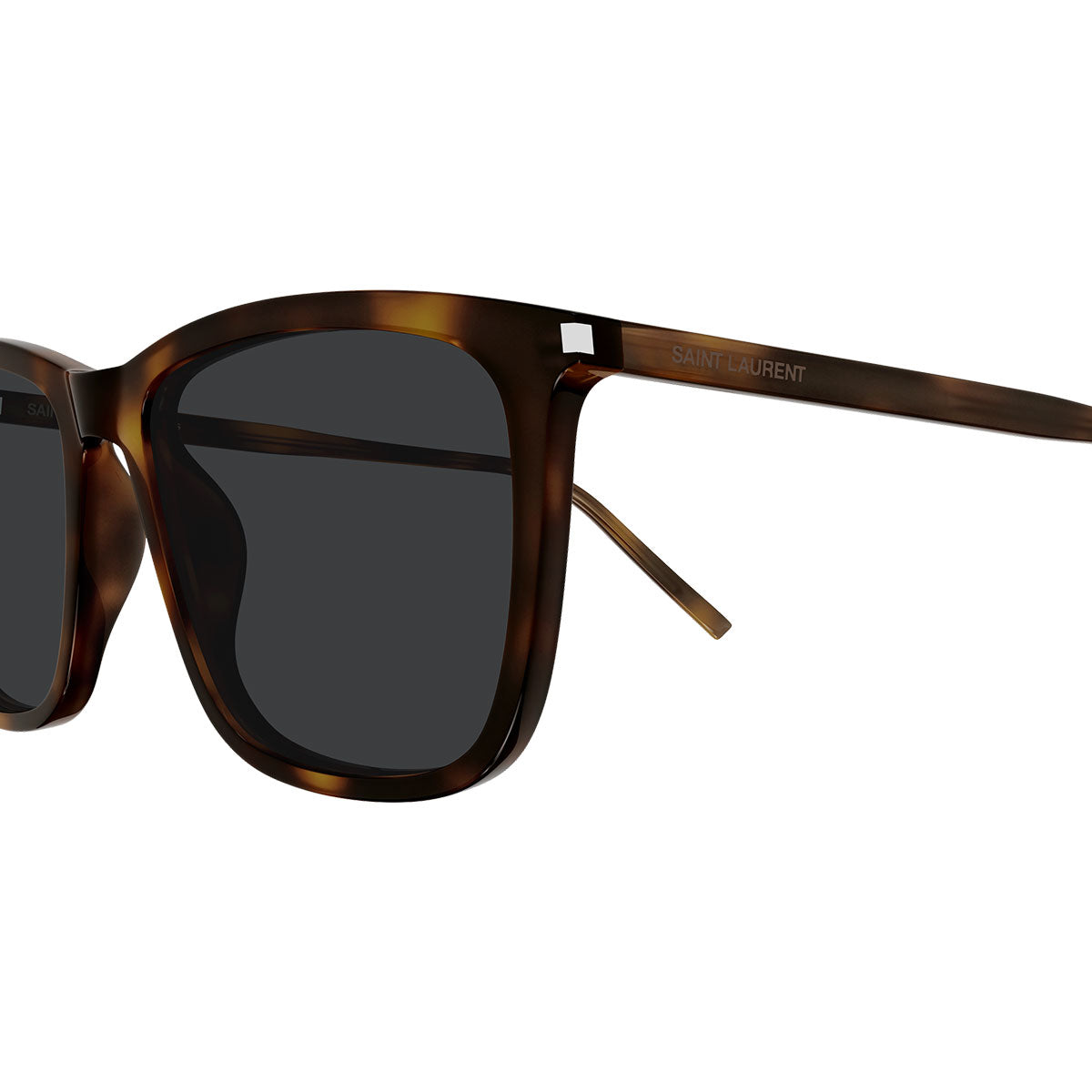 Gli occhiali da sole Saint Laurent SL 851 propongono una montatura da donna squadrata, dal design ampio e morbido con un delicato accenno cat-eye, perfetta per valorizzare lo sguardo con eleganza. Realizzati in acetato sottile, offrono una vestibilità leggera e confortevole. L’iconico corner angle e il logo con scritta Saint Laurent inciso sulle aste completano il modello con dettagli raffinati e immediatamente riconoscibili.