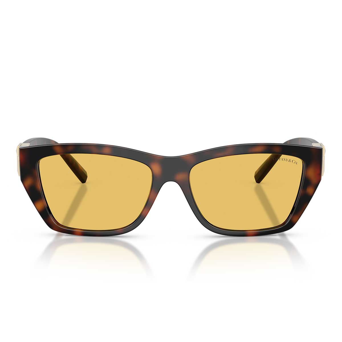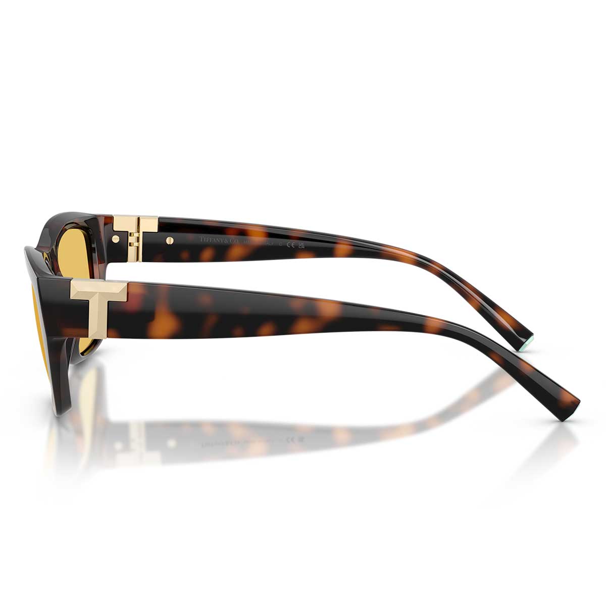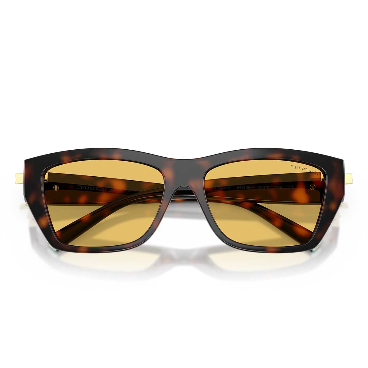 Le lenti sono disponibili in combinazioni giocose e raffinate, tra cui la celebre Tiffany Blue® con sfumatura marrone e una vivace variante gialla, per uno stile luminoso e moderno. All’interno delle aste, il dettaglio inciso al laser del logo Tiffany & Co. completa il modello con discrezione e prestigio.