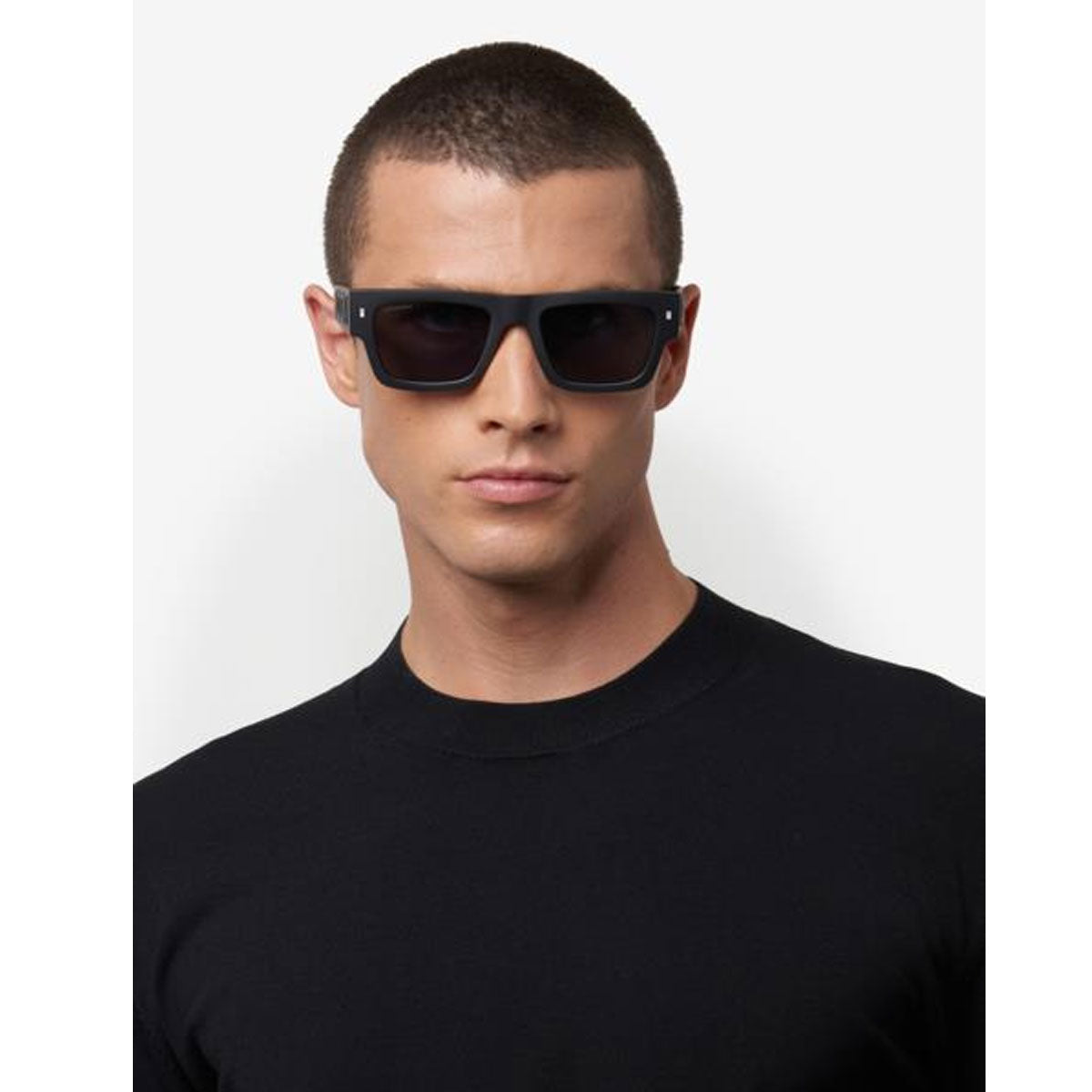 Oprawa ma wyraźne kontury, umiejętnie wycięte wewnątrz, aby zapewnić większą lekkość i komfort, podczas gdy kwadratowe nity i liść klonu na końcówkach dopełniają wygląd charakterystycznym akcentem typowym dla DSQUARED2.