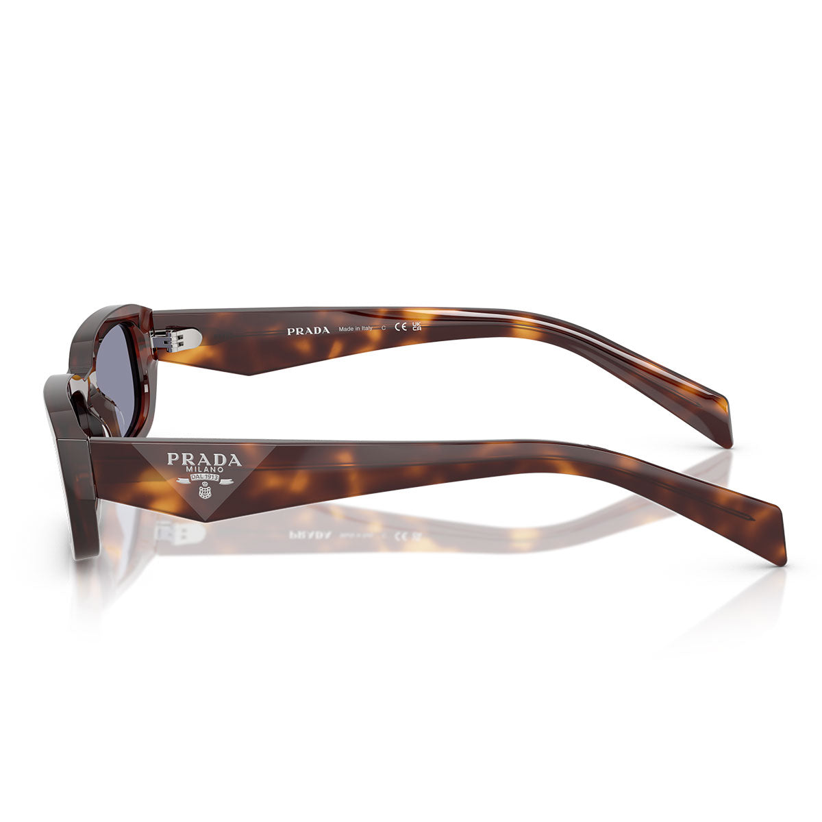 Okulary przeciwsłoneczne Prada Occhiali da Sole PRB06S z kolekcji Prada Symbole ucieleśniają wyrafinowaną odwagę dzięki swojemu eleganckiemu i charakterystycznemu designowi. Wykonane z acetatu, te okulary mają charakterystyczne, fasetowane zauszniki nawiązujące do ikonicznego kształtu trójkąta, niekwestionowanego symbolu Maison. Logo Prada jest wygrawerowane wewnątrz zauszników, dodając dodatkowego akcentu ekskluzywności.