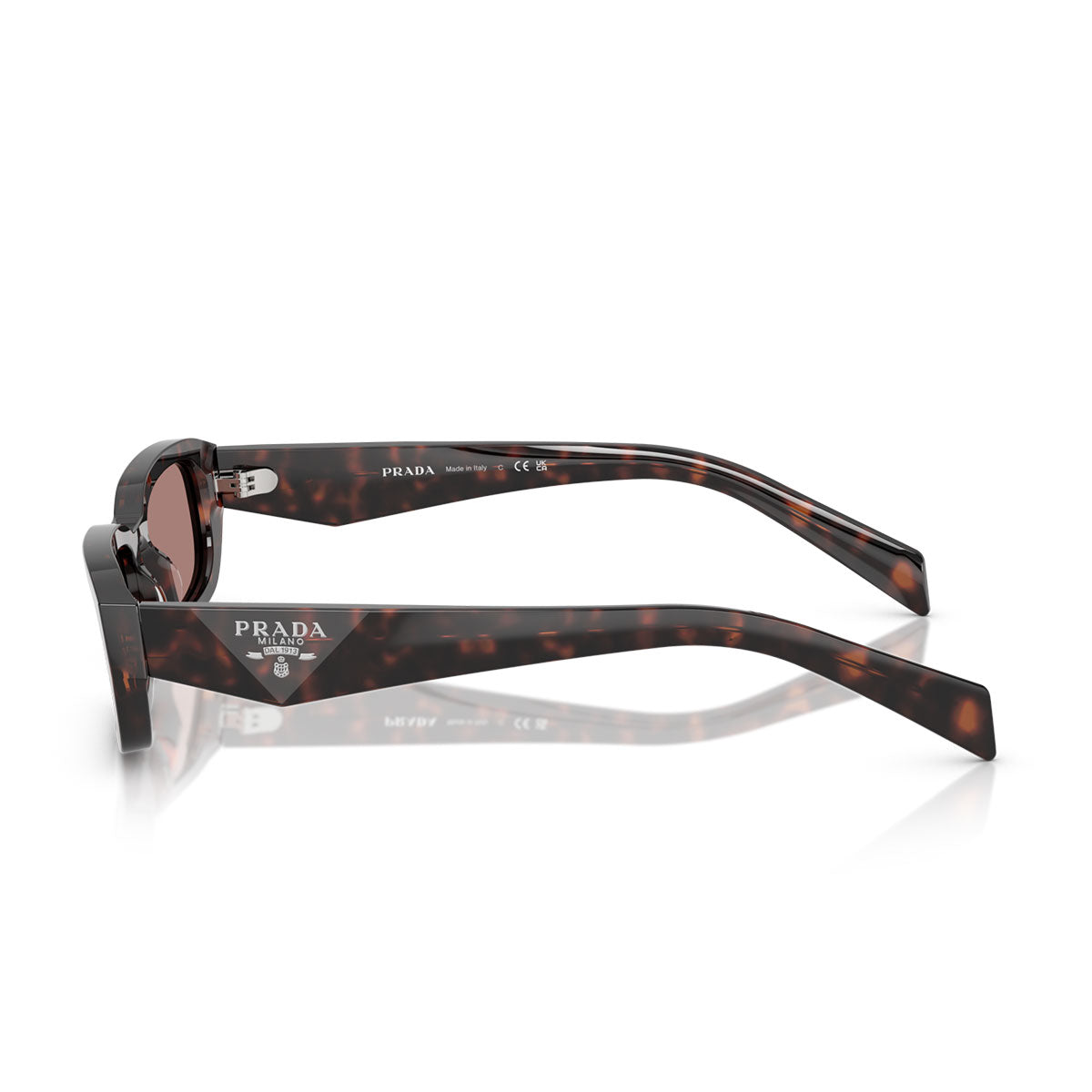 Okulary przeciwsłoneczne Prada Occhiali da Sole PRB06S z kolekcji Prada Symbole ucieleśniają wyrafinowaną odwagę dzięki swojemu eleganckiemu i charakterystycznemu designowi. Wykonane z acetatu, te okulary mają charakterystyczne, fasetowane zauszniki nawiązujące do ikonicznego kształtu trójkąta, niezaprzeczalnego symbolu Maison. Logo Prada jest wygrawerowane wewnątrz zauszników, dodając dodatkowego akcentu ekskluzywności.