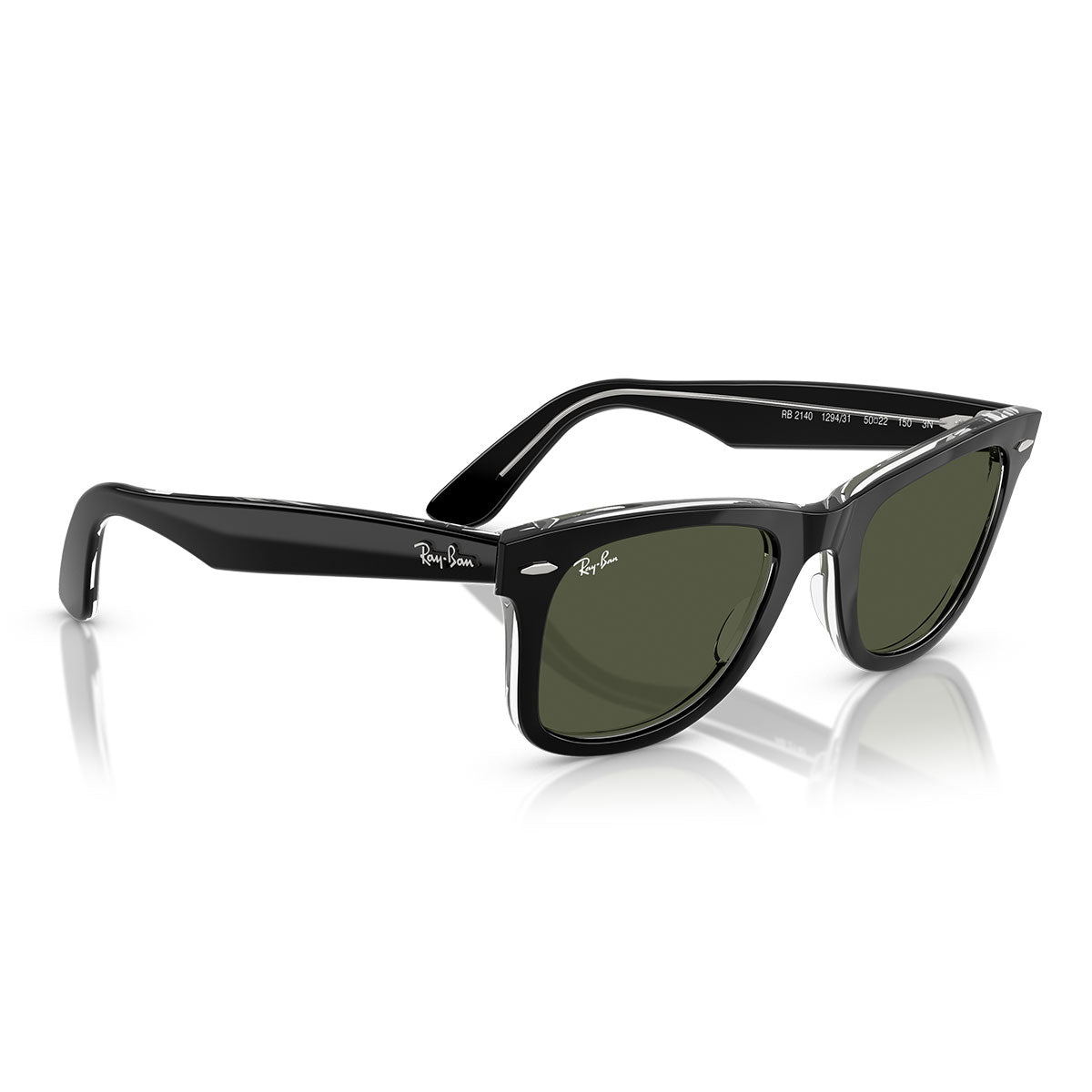 Ray-Ban Okulary Przeciwsłoneczne RB2140 129431 Wayfarer Czarny Na Przezroczystym/Zielonym Unisex