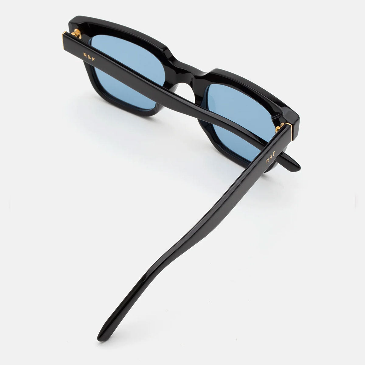 Wykonane z grubego i wytrzymałego acetatu, te okulary mają szerokie geometryczne soczewki, które nadają zdecydowany i wyrafinowany wygląd. W tej wersji oprawki z czarnego błyszczącego acetatu łączą się z intensywnie niebieskimi soczewkami, tworząc odważny i wyróżniający się styl.